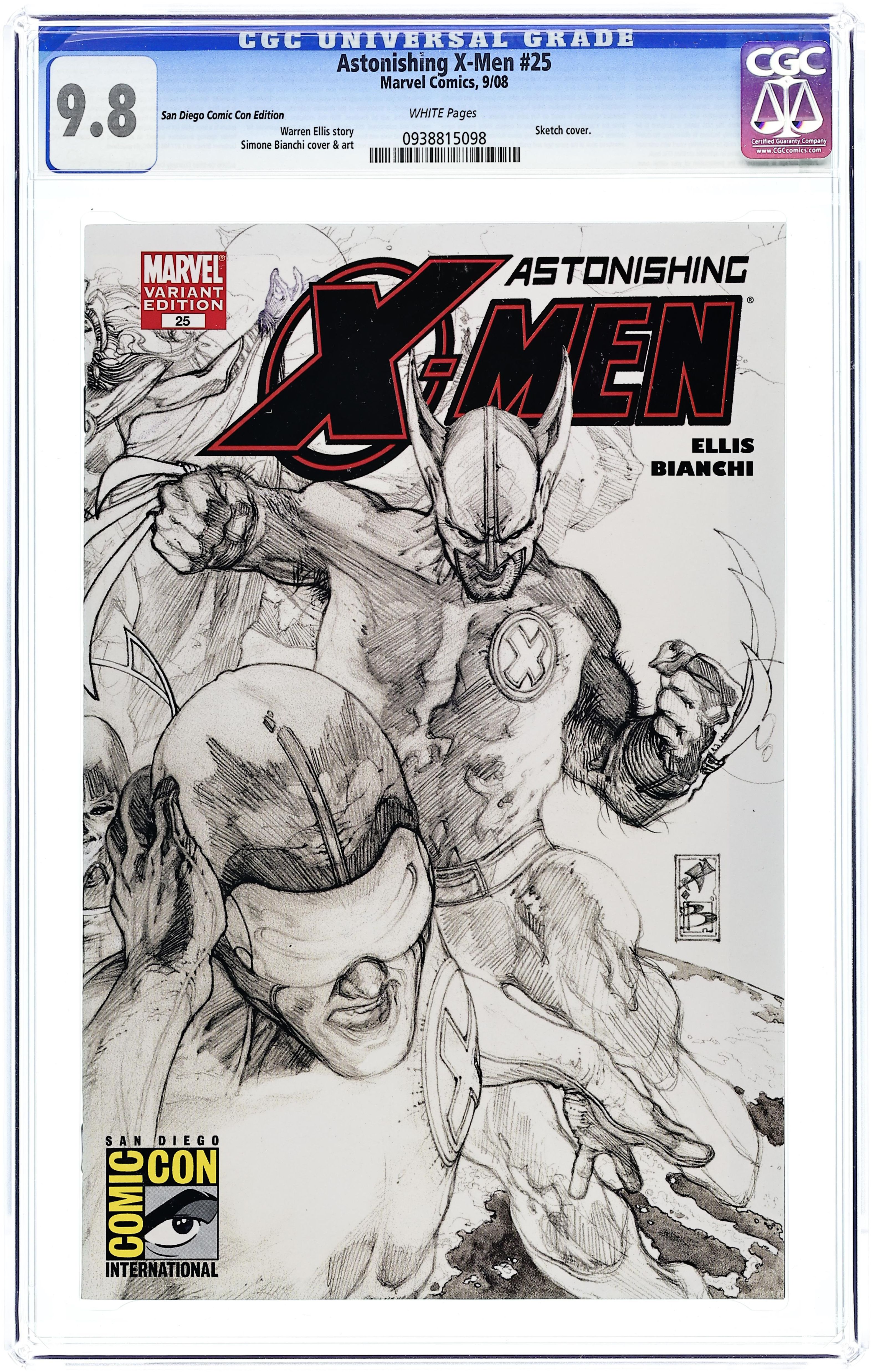 San Diego Convention Exclusive Variant Cover by Simone Bianchi with San Diego Comic Con logo in lower left corner of cover. X-Men: - Manifest Destiny tie-in - Ghost Box: Part 1 - Written by WARREN ELLIS Pencils by SIMONE BIANCHI It's the book you've been waiting for. The superstar team of Warren Ellis and Simone Bianchi are ready to take the X-Men to the 'Second Stage'! 'Messiah CompleX' pulled the X-Men team together, 'Divided We Stand' tore them apart. Now the X-Men are back to business -- with a new look, a new base of operations, and a mystery to solve that will take them into previously uncharted territory and test them to their core! 32 PGS./Rated T+ Cover price $2.99.
