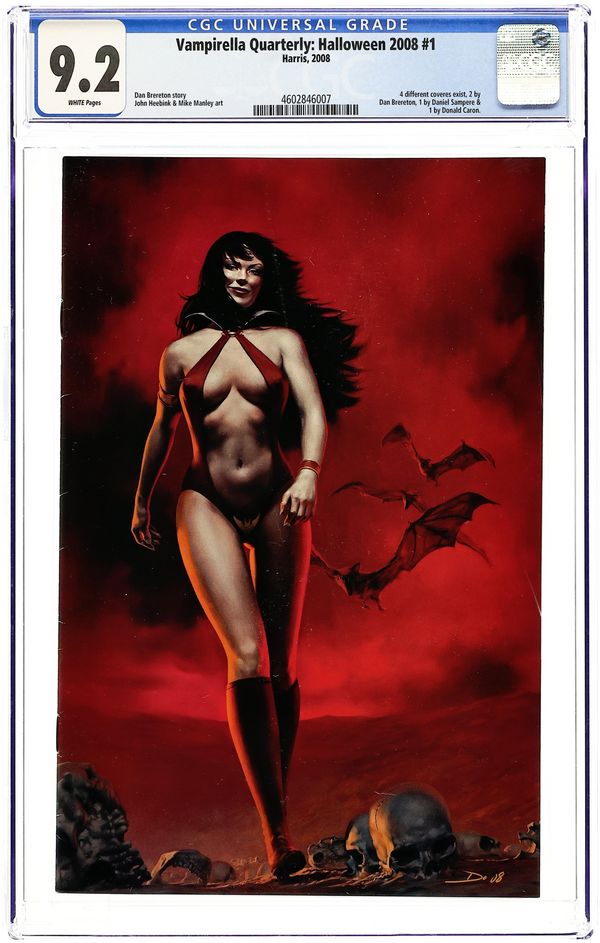 Halloween 2008 Limited Edition cover D by Donald Caron. by Dan Brereton & John Heebink Lower Price! More New Story! No Reprinted Material! What better way to celebrate Halloween than with the sexiest icon in horror: Vampirella! Comics maverick Dan Brereton (Nocturnals) writes what's sure to be an instant classic, featuring art by John Heebink (Doll and Creature, Elvira). Religious fanatics on a rampage have captured Vampirella and thrown her into a maximum security prison for demon women. These madmen think they can reform her, redeem her, change her. Well, Vampi's got other plans!