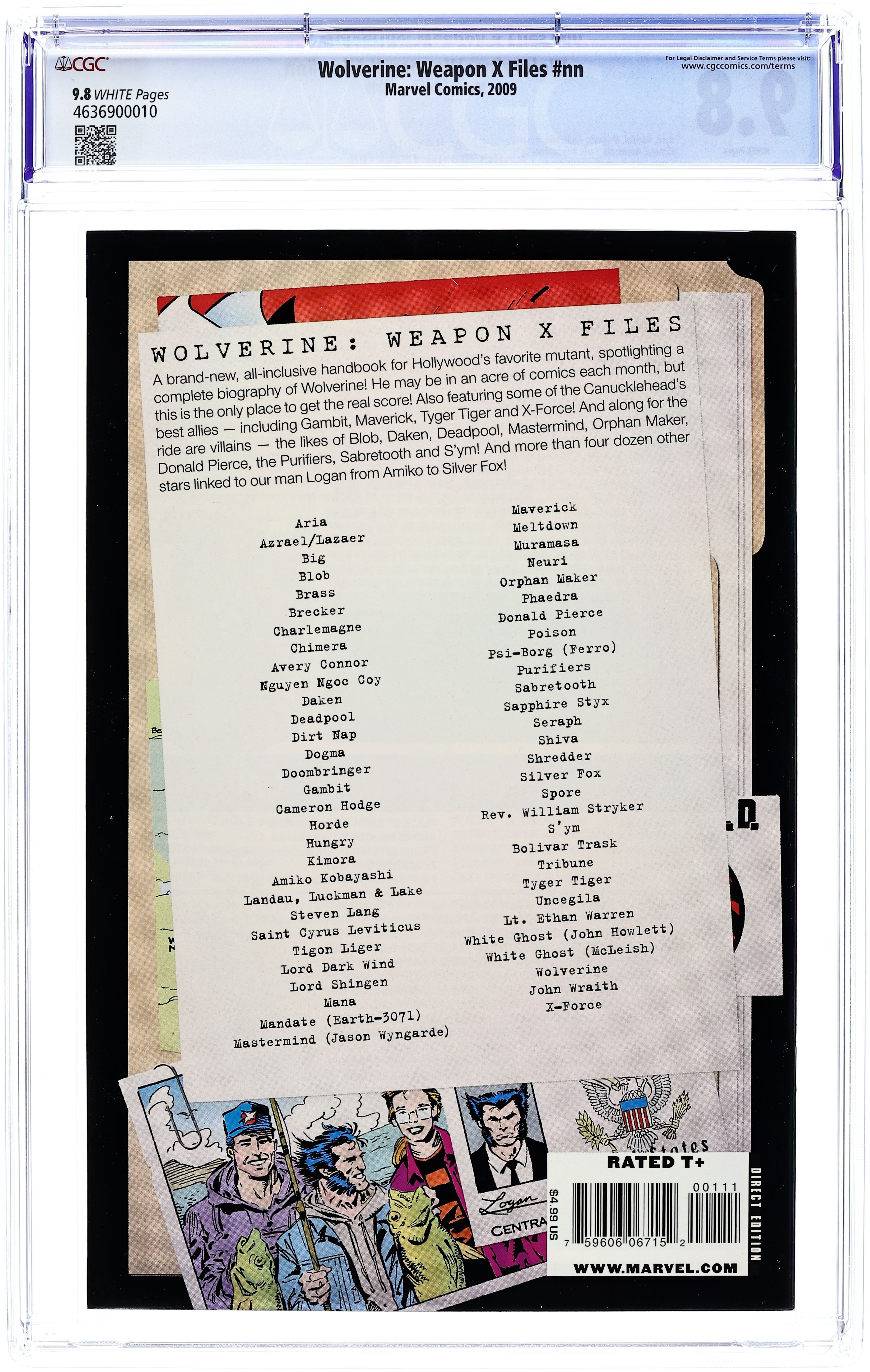Written by JEFF CHRISTIANSEN, RONALD BYRD, ERIC J. MOREELS, STUART VANDAL, MICHAEL HOSKIN, CHAD ANDERSON, RICH GREEN, JEPH YORK, MARKUS ETTLINGER, MADISON CARTER & MIKE FICHERA Cover by FRANK MARTIN A brand-new, all-inclusive handbook for Hollywood's favorite mutant, spotlighting a complete biography of Wolverine! He may be in an acre of comics each month, but this is the only place to get the real score! Also featuring some of the Canucklehead's best allies - including Gambit, Maverick, Tyger Tiger and X-Force! And along for the ride are villains - the likes of Blob, Daken, Deadpool, Mastermind, Orphan Maker, Donald Pierce, the Purifiers, Sabretooth and S'ym! And more than four dozen other stars linked to our man Logan from Amiko to Silver Fox! 64 PGS./Rated T+ ...$4.99 Cover price $4.99.