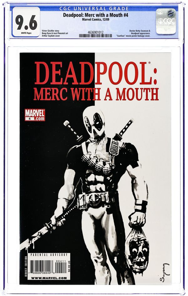 Head Trip: Part 4 - Cover by ARTHUR SUYDAM. Written by VICTOR GISCHLER. Art by BONG DAZO. Things just keep getting more savage in the Savage Land for poor old Wade. Not only does a crack squad of Hydra shock troops want to put the smackdown on our boy Deadpool, but the cavemen want back their god (i.e. the severed-but-still annoying head of the Marvel Zombies Deadpool) and have turned out the troops, spears ready to fly. Even with Ka-Zar's help, it's going to be a close one. To make matters worse, 'Severed Headpool' can't keep his teeth to himself. One hungry bite can bring a world of hurt down on top of Deadpool and the luscious Dr. Betty. 32 pages, full color. Cover price $2.99.
