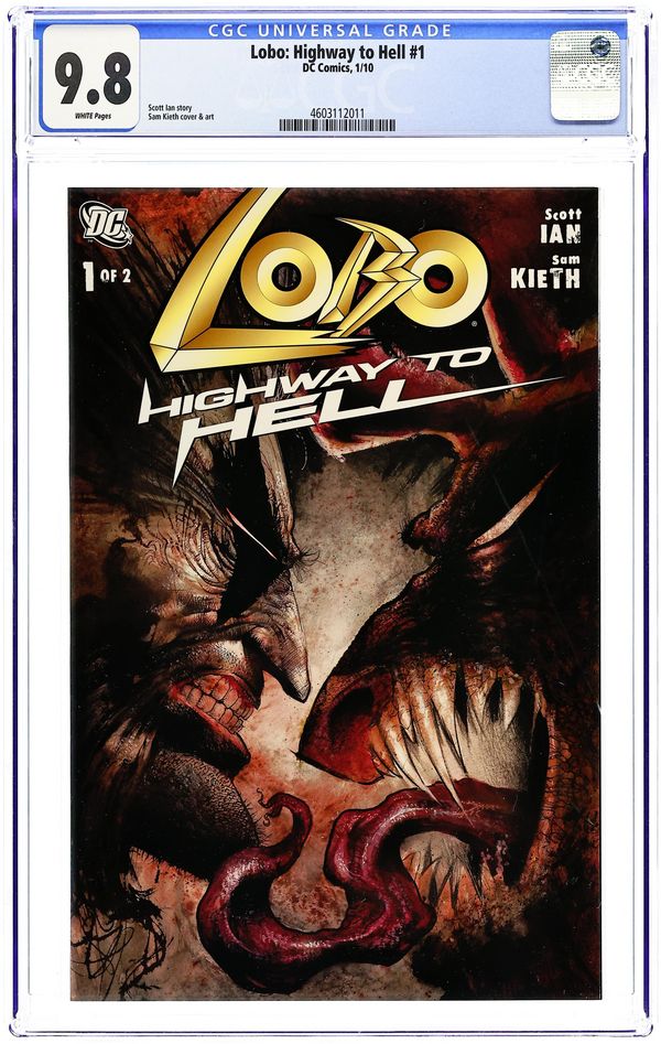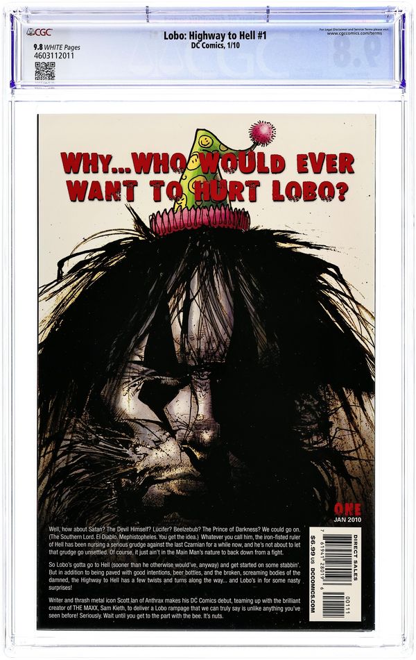 Written by Scott Ian. Art and cover by Sam Kieth. A Lobo story like nothing you've seen before! You can imagine that when you live life the way the Main Man lives life - loud, loose, and ludicrously violent - you might pick up an enemy or two along the way. An enemy like, say, oh I don't know, Satan himself. And Satan, my friends, does not play around. Hell's iron-fisted ruler has a serious mad-on for the last Czarnian, and he's gonna hit Lobo right in his blackened, scabrous heart. So Lobo's just gonna have to hit him harder. Repeatedly. In the FACE. But first, Lobo has to go to Hell...a little sooner than anticipated! Metal icon Scott Ian of Anthrax makes his comics debut, joining forces with visionary creator Sam Kieth to bring you a Lobo story that's so over the top, you won't even remember what the top used to look like! Bleeding dolphins, demonic Chihuahuas, the world's worst cruise ship, exploding moons, severed heads, and still more sick fraggin' stuff all await you on the Highway to Hell - don't miss a single twisted page! 64 pages, full color. Cover price $6.99.