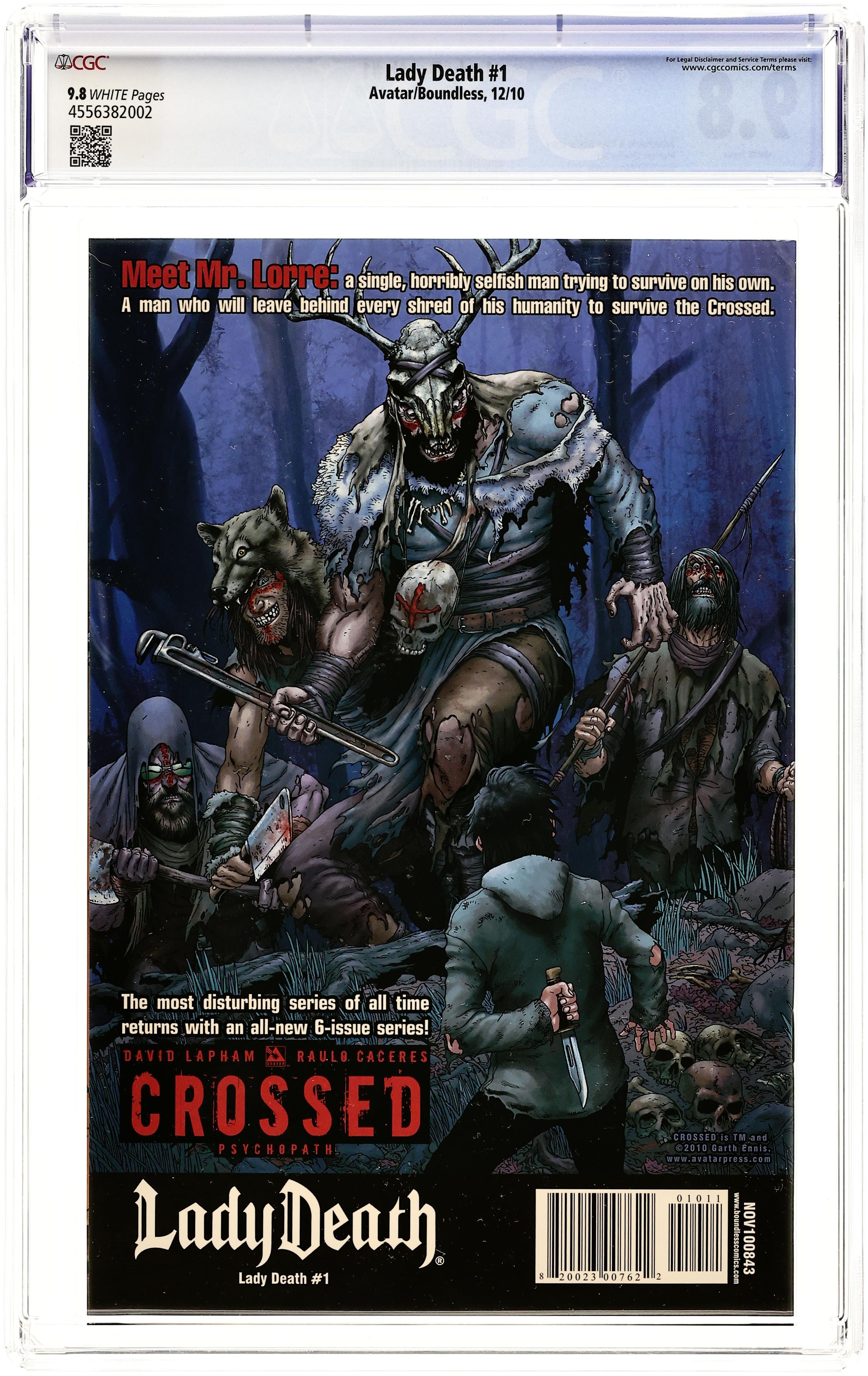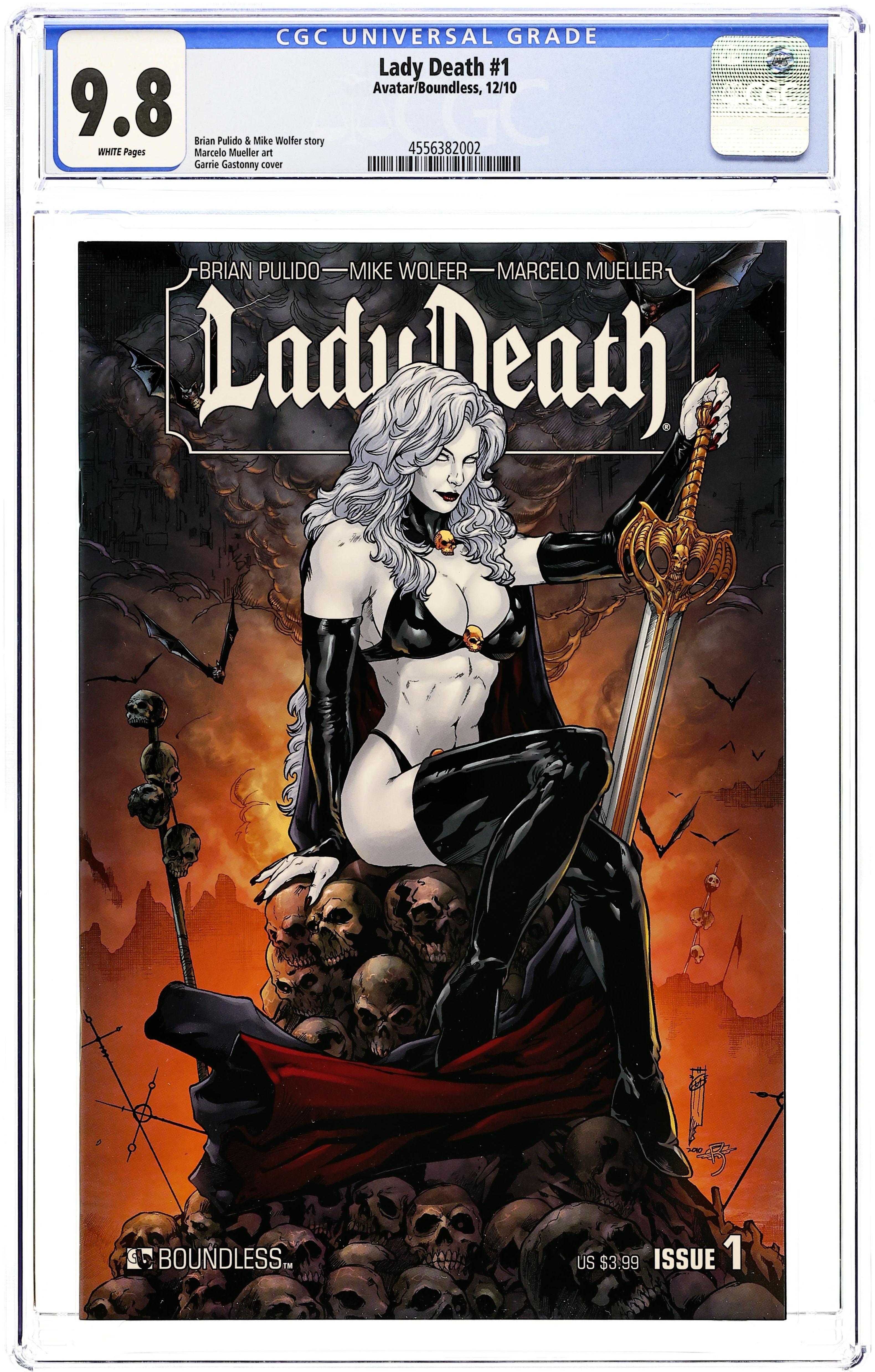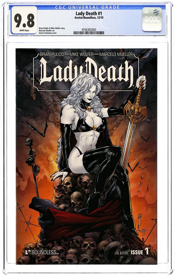 Cover by Garrie Gastonny. (W) Brian Pulido, Mike Wolfer (A) Marcelo Mueller Lady Death is back in an all-new, on-going monthly series! The most popular femme fatale in comics returns with a vicious new tale that delivers for both new and old readers! Lady Death's quest to recover the fragments of her mysterious past and otherworldly powers begins! Living as a simple thief among a family of renegades and robbers, Illadra now knows that her existence is a mere facade, masking a heritage of horror and incredible abilities that were born in the dimension called 'The Nether Realm.' Tortured by fragments of nightmares and the glimpses of a past life long-forgotten, Illadra knows that her soul will not rest until she has recovered that which was stolen from her by the entity known as 'Death Queen.' But her journey may end before it has begun, as a monstrous, werewolf assassin is dispatched through the dimensional breach to hunt Illadra and destroy her before she can recover her lost powers. Co-written by Mike (Gravel, Wolfskin) Wolfer and original creator Brian Pulido, this series promises to be the most powerful Lady Death tale ever! Amazing new talent Marcelo Mueller provides the luscious art and Digikore brings the dramatic colors wrapped in a stunning new cover by Garrie (Supergod) Gastonny! Also available with a Wraparound cover by Juan Jose Ryp and a special Art Deco Retailer Order Incentive by painter Michael Dipascale! Cover price $3.99.