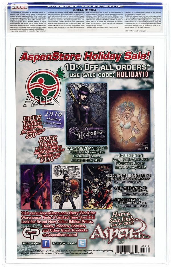 Limited Variant Cover by J. Scott Campbell. (W/A) Joe Benitez From the imaginative mind of Joe Benitez with colors by the incomparable Peter Steigerwald, comes this all-new supernatural action-adventure series! The tabloids dubbed her 'Lady Mechanika', the sole survivor of a psychotic serial killer's three-year rampage through London. Found locked in an abandoned laboratory amidst countless corpses and body parts, with her own limbs amputated and replaced with mechanical components, her life began anew. With no memory of her captivity or her former life, Lady Mechanika eventually built a new life for herself as a private detective, using her unique abilities to solve cases the police couldn't or wouldn't handle. But, she has never stopped searching for answers... Now, brought into a case unlike any before, Lady Mechanika will have to rely on her advantage in all things occult and paranormal in order to solve the case and possibly unlock the secrets to her past! Cover price $2.99.