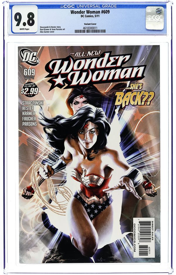 Limited 1 for 10 Variant cover by ALEX GARNER. Odyssey: Part 9 of 13 - Written by J. MICHAEL STRACZYNSKI & PHIL HESTER. Art by DON KRAMER, SEAN PARSONS & WAYNE FAUCHER. In a near-death vision, Diana experiences the power of Dr. Psycho! But is he foe or friend? Wonder Woman's intensely trippy story continues as hints of her 'normal' reality continue popping up in unexpected ways. Don't miss this issue's revelations! 32 pg, FC Cover price $2.99.