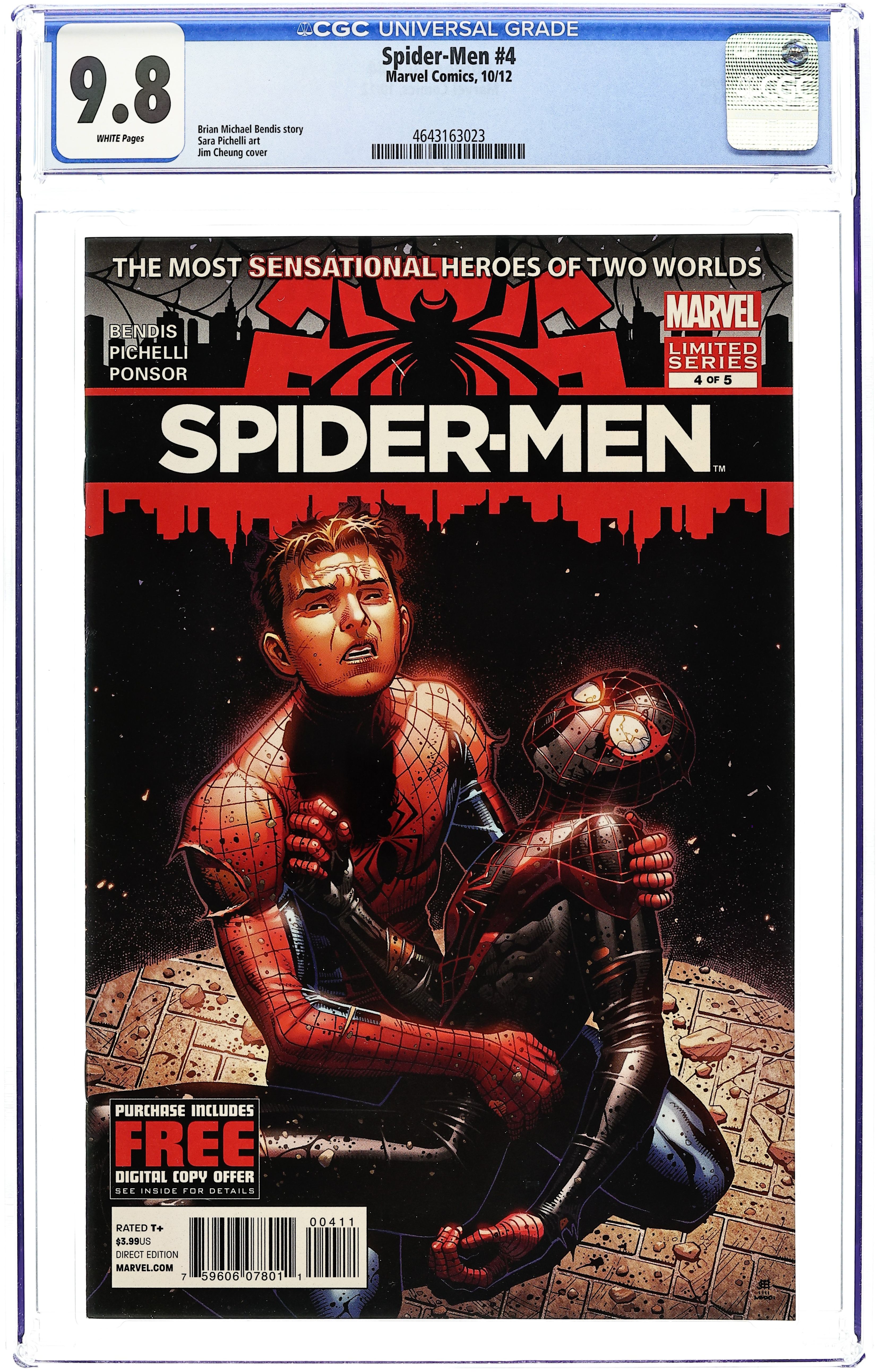 (W) Brian Michael Bendis (A) Sara Pichelli (CA) Jim Cheung Can the Spider-Men stop Mysterio? Peter Parker comes face-to-face with the family he never had! ONE OF THE MOST POWERFUL MOMENTS IN THE LIVES OF BOTH SPIDER-MEN!!! Cover price $3.99.