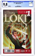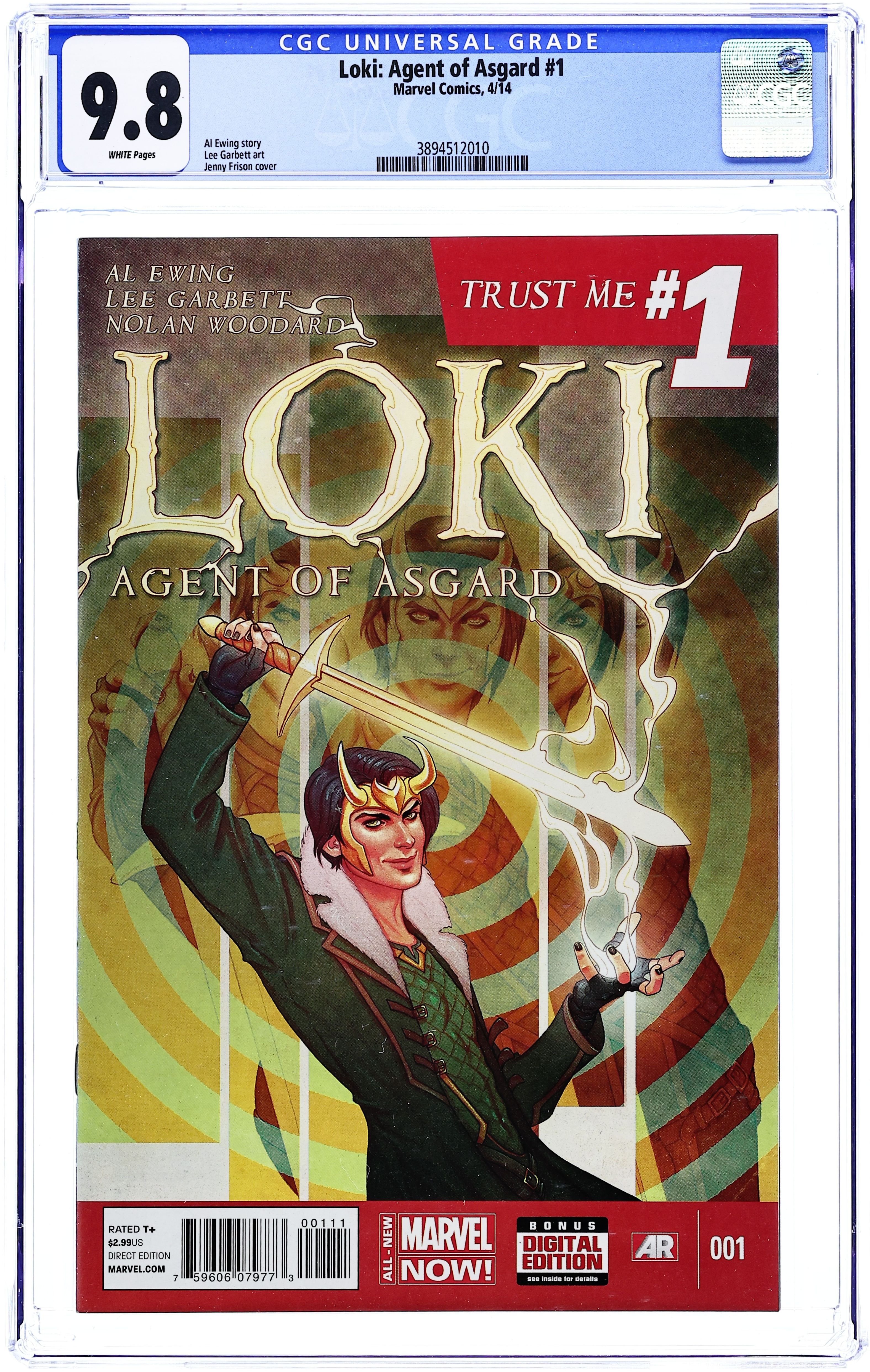 Cover by Jenny Frison. Written by Al Ewing. Art by Lee Garbett. Old God - New Trickster! Kid Loki's all grown up - and the God of Mischief is stronger, smarter, sexier and just plain sneakier than ever before. As Asgardia's one-man secret service, he's ready to lie, cheat, steal, bluff and snog his way through the twistiest, turniest and most treacherous missions the All-Mother can throw at him... starting with a heart-stopping heist on Avengers Tower - and the death of Thor! And that's just the beginning! Would we lie to you? This is LOKI, true believer - we're lying to you RIGHT NOW! Cover price $2.99.