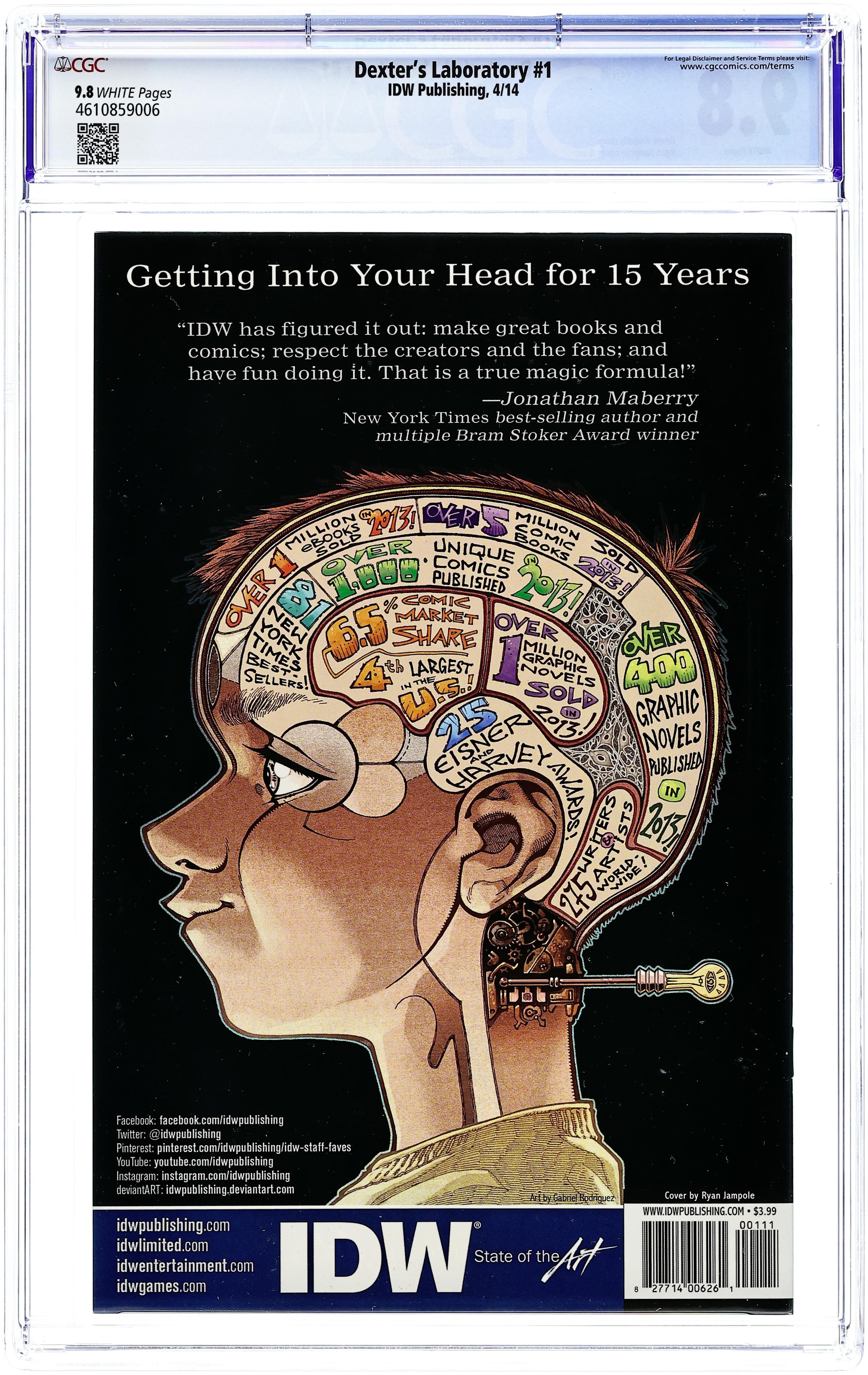 Written by Derek Fridolfs. Art and Cover by Ryan Jampole. Everyone's favorite boy-genius returns to comics! Dexter has reached the pinnacle of his greatest scientific experiment-one that will gift him with infinite clarity and superhuman intellect beyond all mankind. But with every precaution in place, will he be able to finish it before his meddling sister Dee Dee ruins everything…AGAIN?! 28 pages, full color. Cover price $3.99.