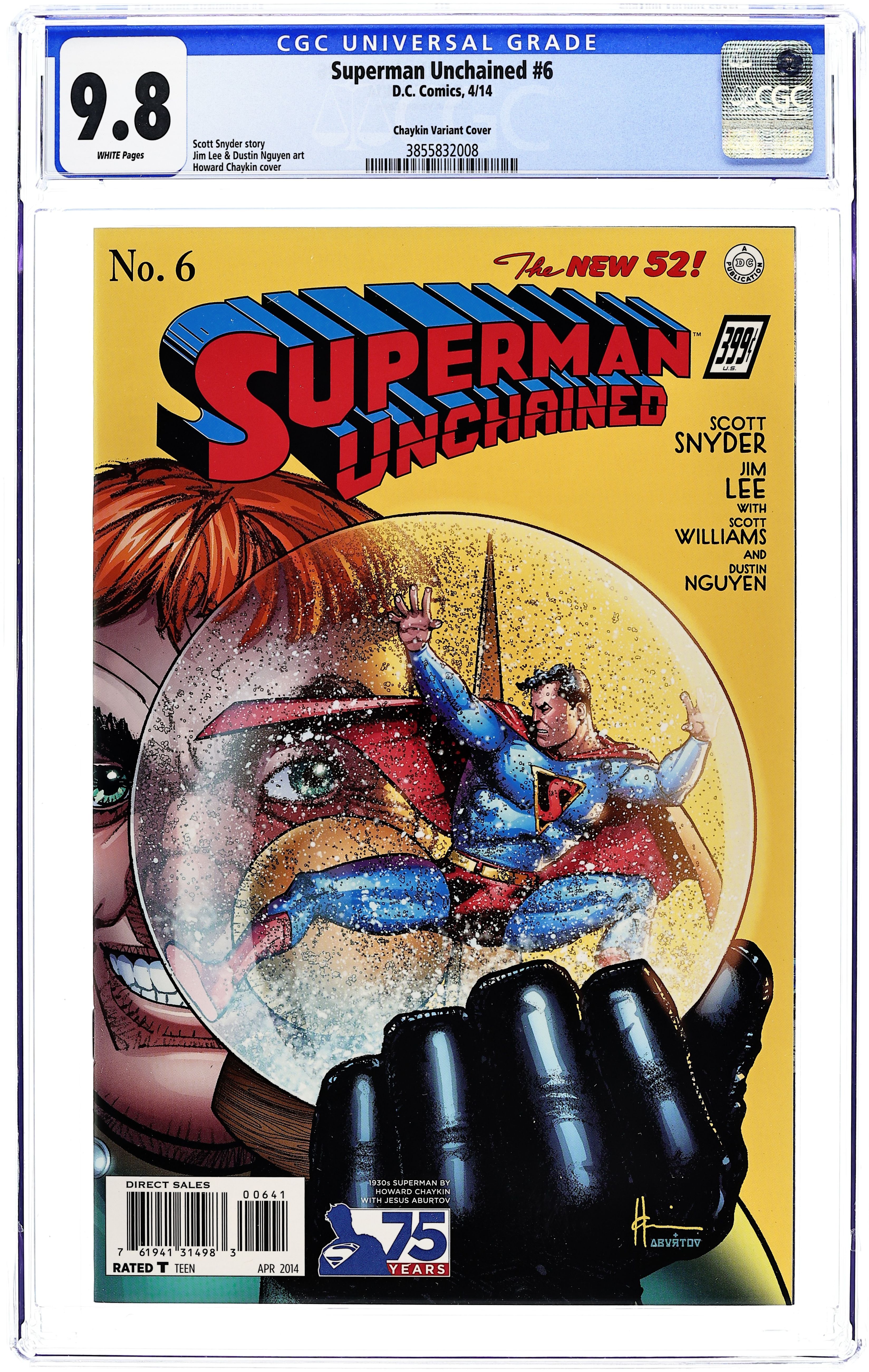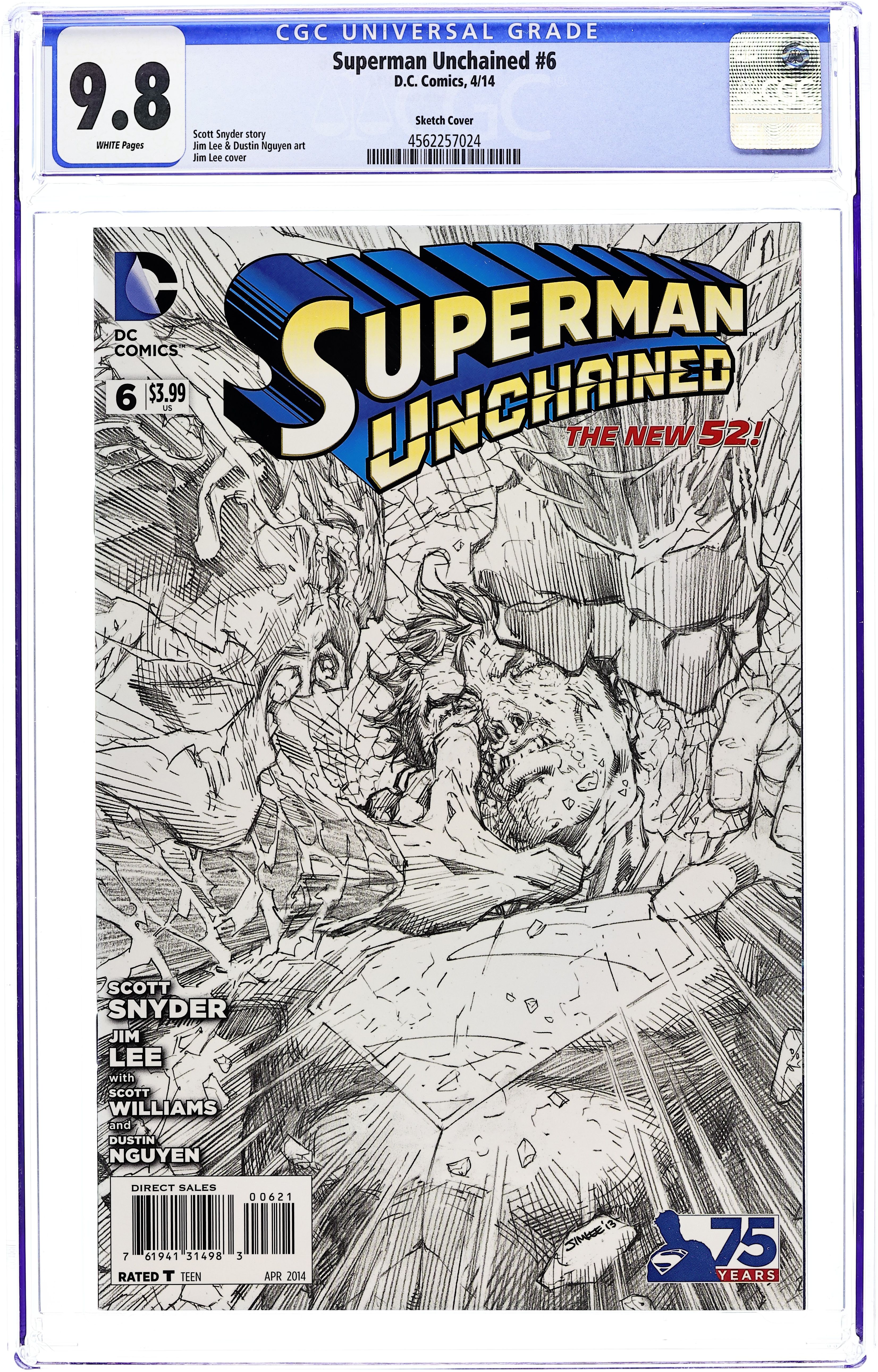 Limited 1 for 100 Retailer Incentive Variant Cover(W) Scott Snyder (A) Jim Lee & Various (C) Howard Chaykin The Man of Tomorrow and the Superman of yesterday go at it - no holds barred! Supes goes full throttle after his would-be ally, Wraith, in a seismic battle ranging from deep space to the ocean's floor and ultimately the core of the earth! Meanwhile, Lois Lane holds the key to defeating Ascension, but she needs to reach the Fortress of Solitude to ensure its safekeeping - not to mention hers! And she's being pursued by a heavily armed force, and it isn't Ascension! Cover price $3.99.