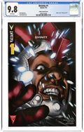 Written by Matt Kindt. Art by Trevor Hairsine. Cover by Jelena Kevic-Djurdjevic. At the height of the Cold War, the Soviet Union - determined to win the Space Race at any cost - green lit a dangerously advanced mission. They sent a man farther into the cosmos than anyone has gone before or since. Lost in the stars, he encountered something unknown. Something that…changed him. Long thought lost and erased from the history books, he has suddenly returned, crash-landing in the Australian Outback. The few that have been able to reach him believe him to be a deity - one who turned the scorched desert into a lush oasis. They say he can bend matter, space, and even time to his will. Earth is about to meet a new god. And he's a communist. How long can it be before the first confrontation between mankind and DIVINITY begins? 32 pages, full color. Rated T+ Cover price $3.99.