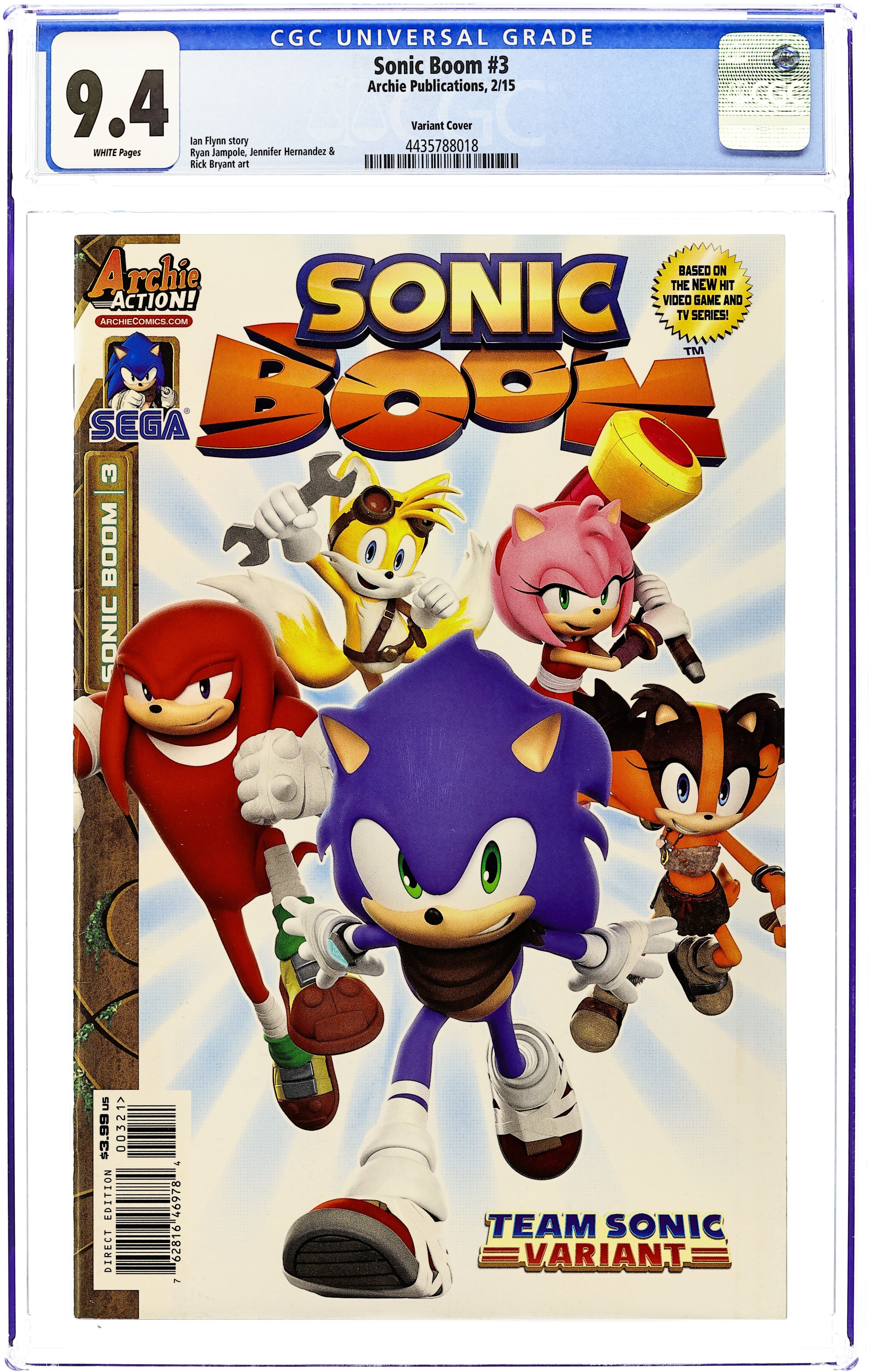 Written by Ian Flynn. Art by Ryan Jampole and Jennifer Hernandez. Cover by Sega. ARE YOU READY FOR THE BOOM?! The NEW ONGOING SONIC COMIC BOOK SERIES from Archie Comics continues its frantic fun with Sonic Boom #3: Hammer Spaced! Amy's most precious possession, her piko hammer, has gone missing! And if she can't find it, her hammer won't be the only thing she'll lose! While the boys are on a hammer-hunting quest, Sticks tries to show Amy a new arsenal-but will she survive the experience?! Don't miss the exclusive tie-in comic to the new TV Show and Video Games from Sega! 32 pages, full color. Cover price $3.99.