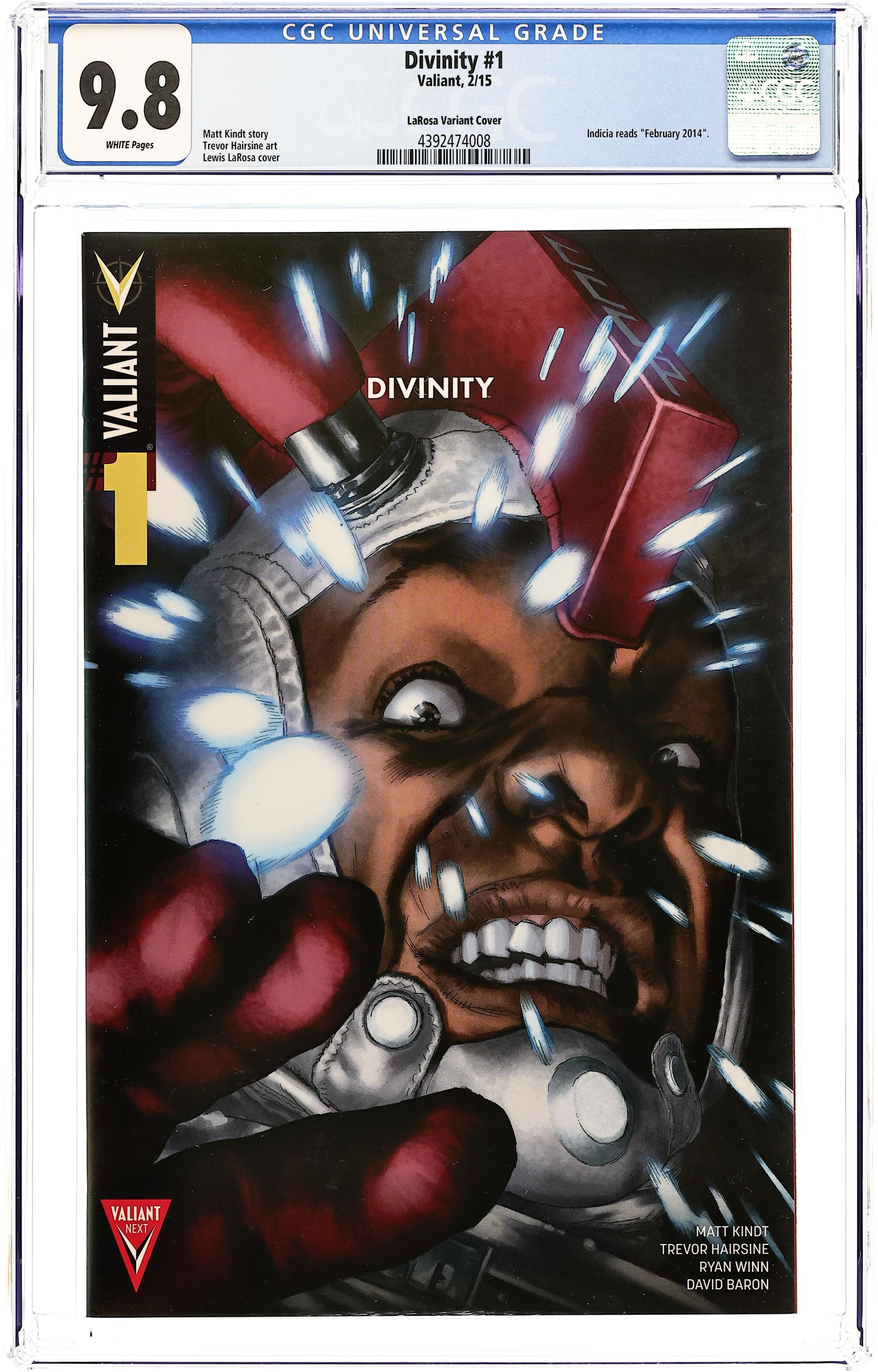 Limited 1 for 40 Retailer Incentive Variant Cover. Written by Matt Kindt. Art by Trevor Hairsine. Cover by Lewis LaRosa. At the height of the Cold War, the Soviet Union - determined to win the Space Race at any cost - green lit a dangerously advanced mission. They sent a man farther into the cosmos than anyone has gone before or since. Lost in the stars, he encountered something unknown. Something that…changed him. Long thought lost and erased from the history books, he has suddenly returned, crash-landing in the Australian Outback. The few that have been able to reach him believe him to be a deity - one who turned the scorched desert into a lush oasis. They say he can bend matter, space, and even time to his will. Earth is about to meet a new god. And he's a communist. How long can it be before the first confrontation between mankind and DIVINITY begins? Cover price $3.99.