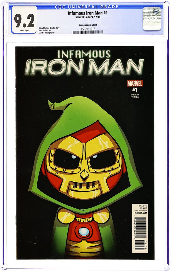 Written by Brian Michael Bendis. Art by Alex Maleev. Cover by Skottie Young. There is a new Iron Man in town and his name is VICTOR VON DOOM. The greatest villain of the Marvel Universe will try something new. Where Tony Stark failed, Doom will succeed. What is Doom's Master Plan? 28 pages, full color. Rated T+ Cover price $3.99.