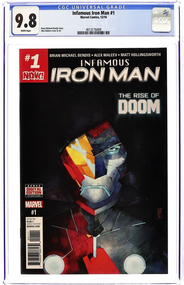 Limited 1 for 25 Retailer Incentive Variant Cover. Written by Brian Michael Bendis. Art by Alex Maleev. Cover by Esad Ribic. There is a new Iron Man in town and his name is VICTOR VON DOOM. The greatest villain of the Marvel Universe will try something new. Where Tony Stark failed, Doom will succeed. What is Doom's Master Plan? 28 pages, full color. Rated T+ Cover price $3.99.