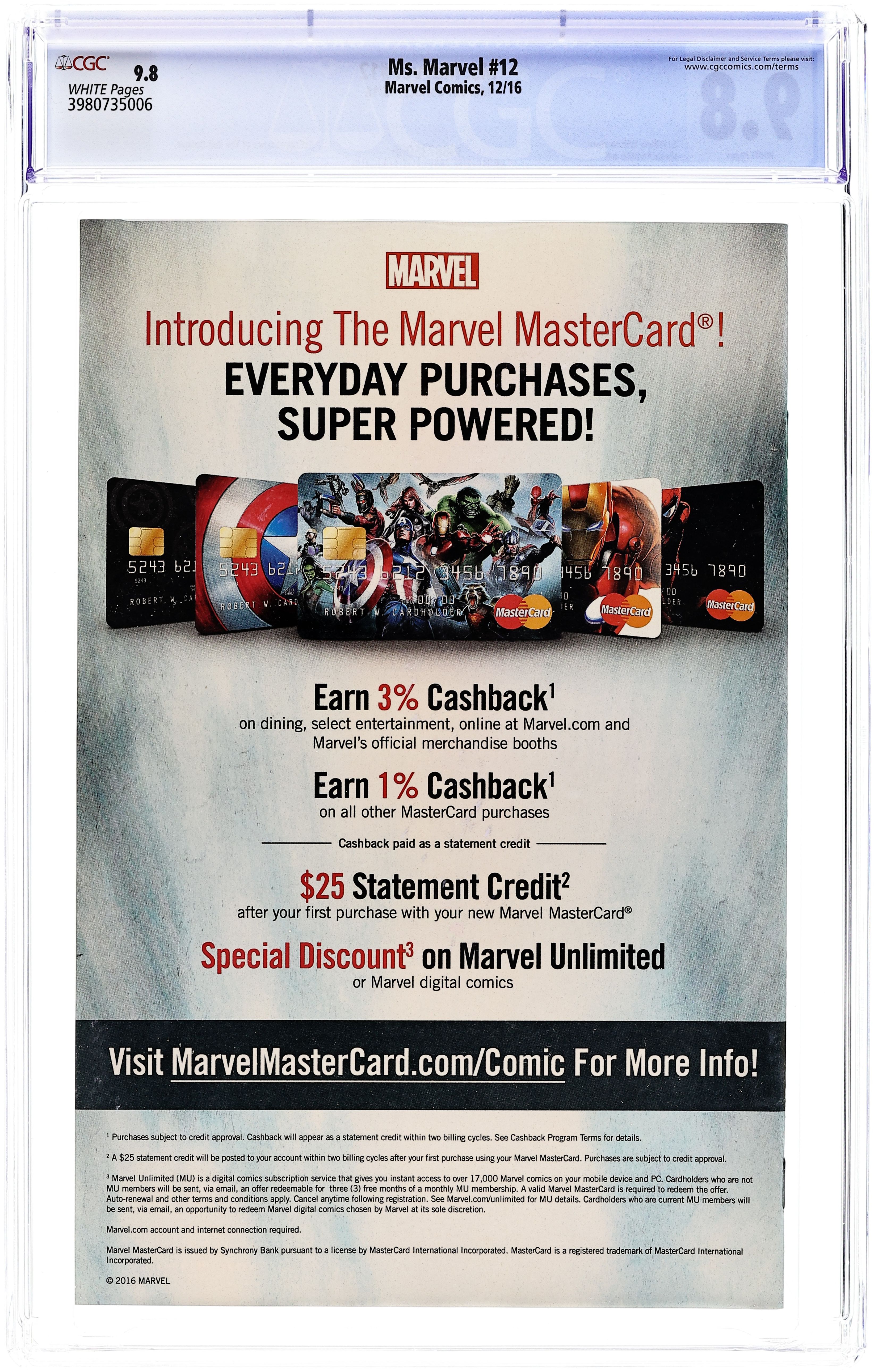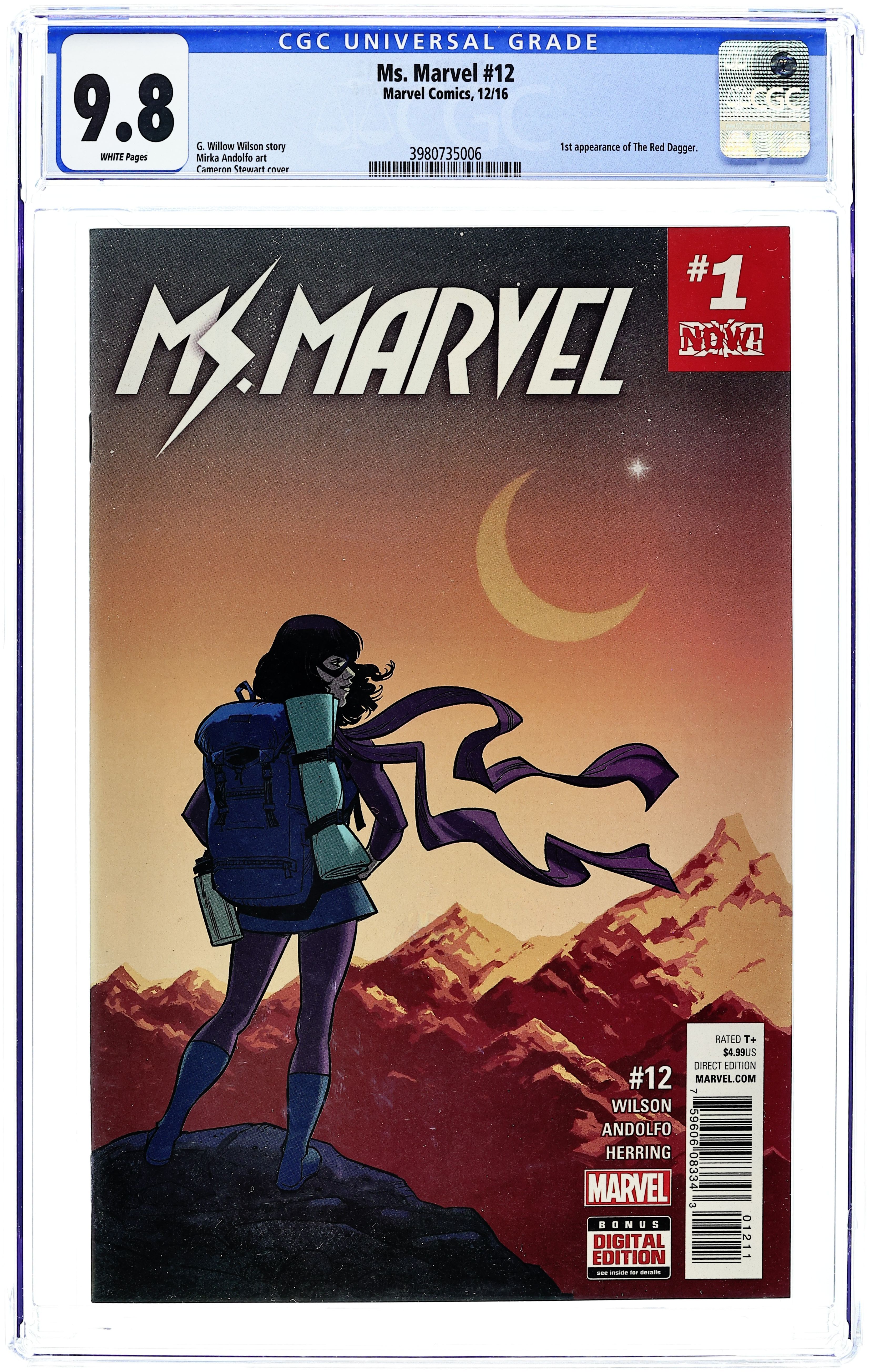 Written by G. Willow Wilson. Art by Mirka Andolf. Cover by Cameron Stewart. Ms. Marvel goes global! After the events of Civil War, Kamala goes on a much-needed road trip. But will she be an international sensation or menace? Bonus 10-page Red Widow story! 36 pages, full color. Rated T+ Cover price $4.99.