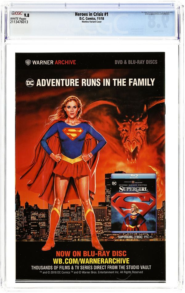 Limited 1 for 200 Retailer Incentive Variant Cover. Written by Tom King. Art by Clay Mann. Cover by Francesco Mattina. There's a new kind of crisis threatening the heroes of the DC Universe, ripped from real-world headlines by C.I.A.-operative-turned-comics-writer Tom King: How does a superhero handle PTSD? Welcome to Sanctuary, an ultra-secret hospital for superheroes who've been traumatized by crime-fighting and cosmic combat. But something goes inexplicably wrong when many patients wind up dead, with two well-known operators as the prime suspects: Harley Quinn and Booster Gold! It's up to the DC Trinity of Superman, Wonder Woman and Batman to investigate-but can they get the job done in the face of overwhelming opposition? 32 pages, full color. Rated T+ Cover price $3.99.