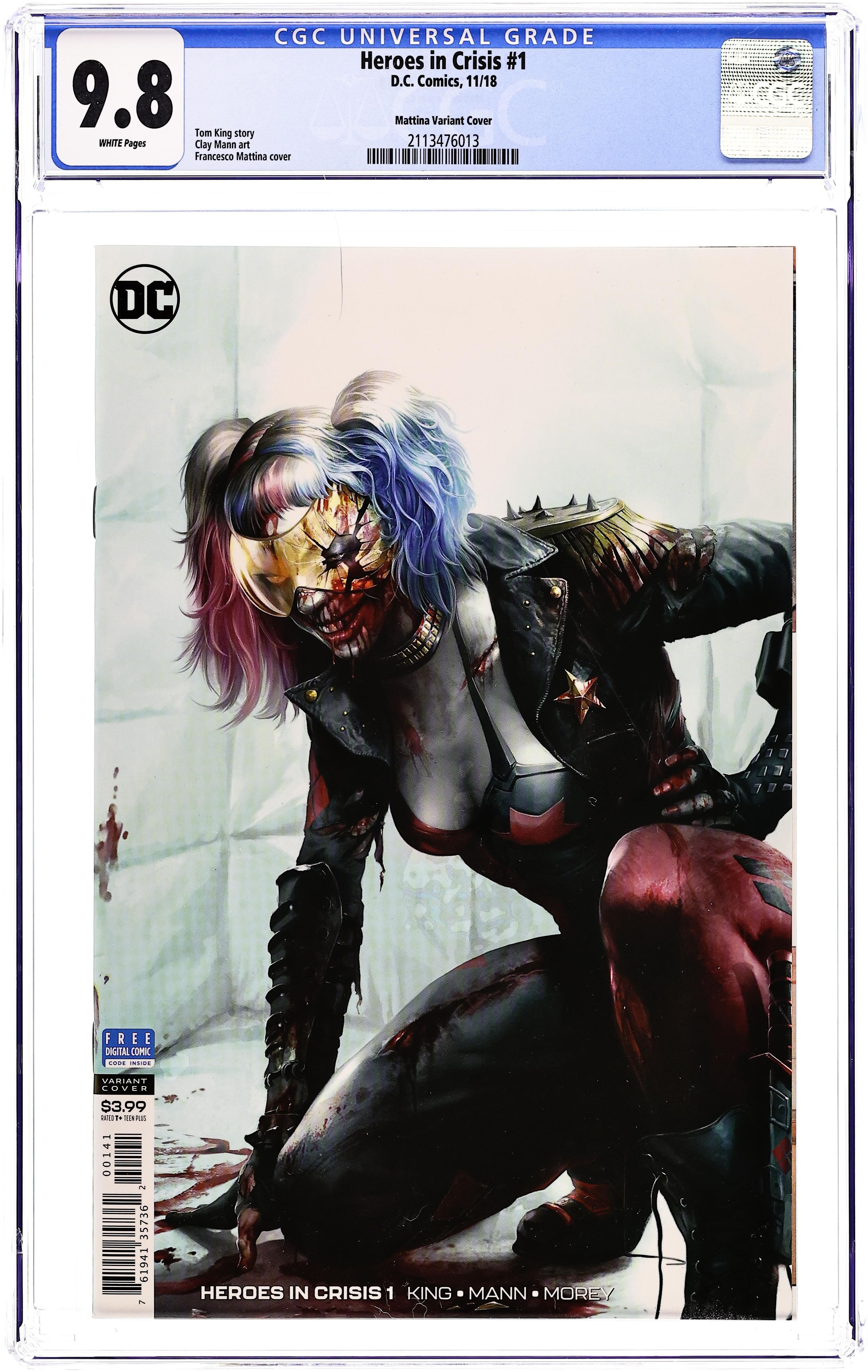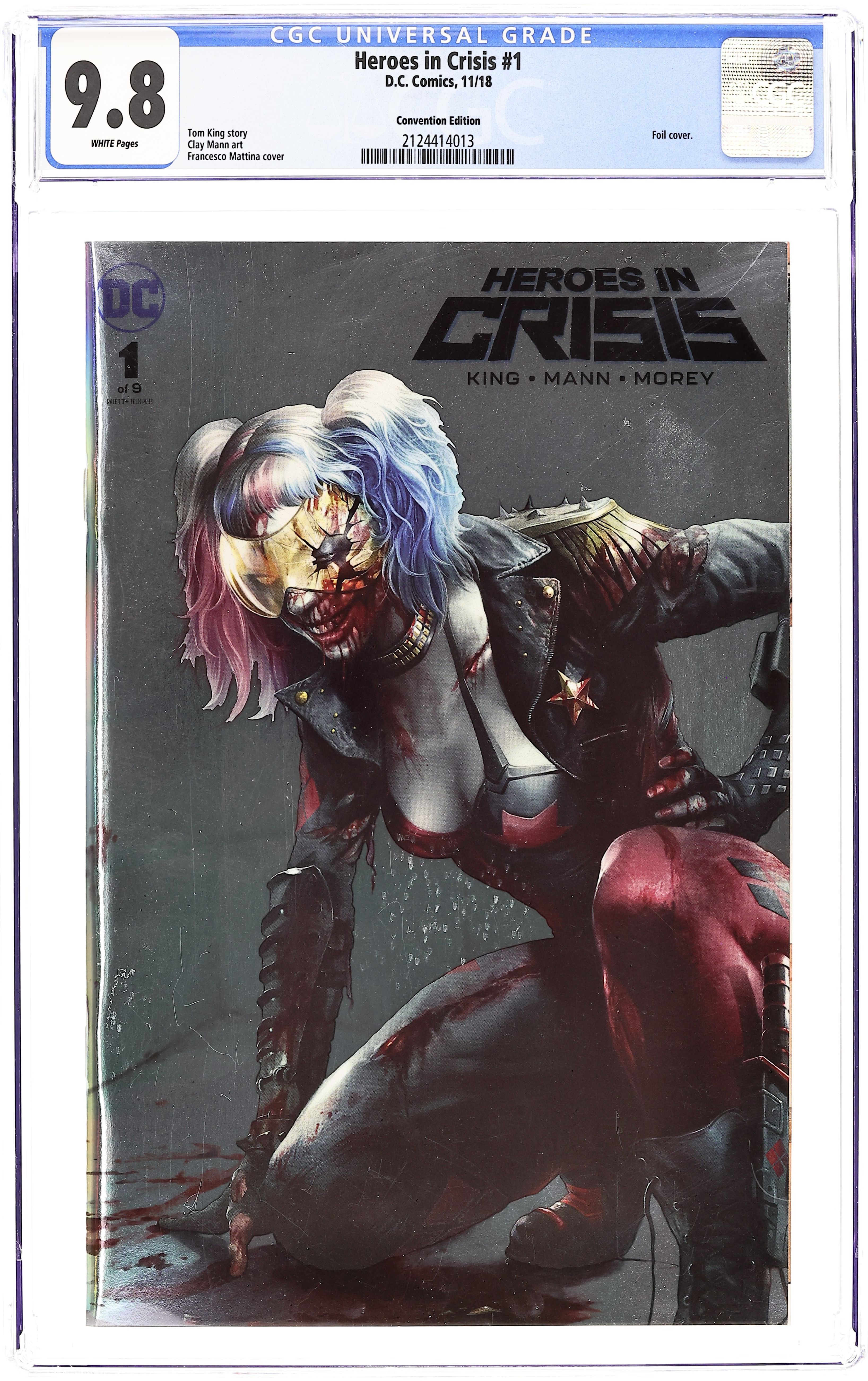 Convention exclusive foil variant.Written by Tom King. Art by Clay Mann. Cover by Francesco Mattina. There's a new kind of crisis threatening the heroes of the DC Universe, ripped from real-world headlines by C.I.A.-operative-turned-comics-writer Tom King: How does a superhero handle PTSD? Welcome to Sanctuary, an ultra-secret hospital for superheroes who've been traumatized by crime-fighting and cosmic combat. But something goes inexplicably wrong when many patients wind up dead, with two well-known operators as the prime suspects: Harley Quinn and Booster Gold! It's up to the DC Trinity of Superman, Wonder Woman and Batman to investigate-but can they get the job done in the face of overwhelming opposition? 32 pages, full color. Rated T+