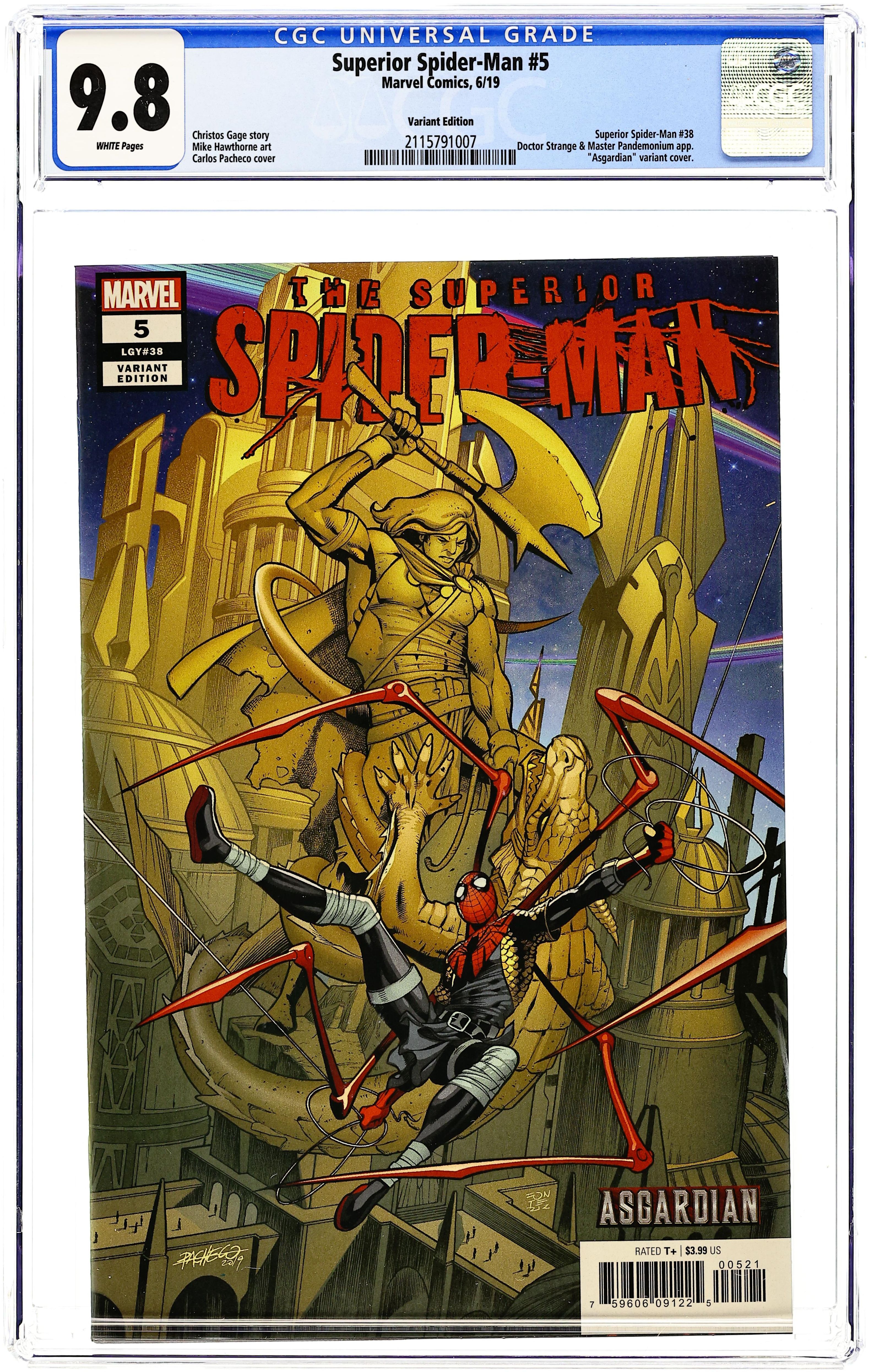 Written by Christos Gage. Art by Mike Hawthorne. Cover by Carlos Pacheco. After the cosmic threat of Terrax, Otto Octavius, the Superior Spider-Man, is ready for the usual Spider-Man fare of street-level villains. So he's none too pleased when a major magic threat rears its ugly head and he's forced to…ugh…ask for help… …from guest star DOCTOR STRANGE! But will Strange help Otto or take him down? 28 pages, full color. Rated T Cover price $3.99.