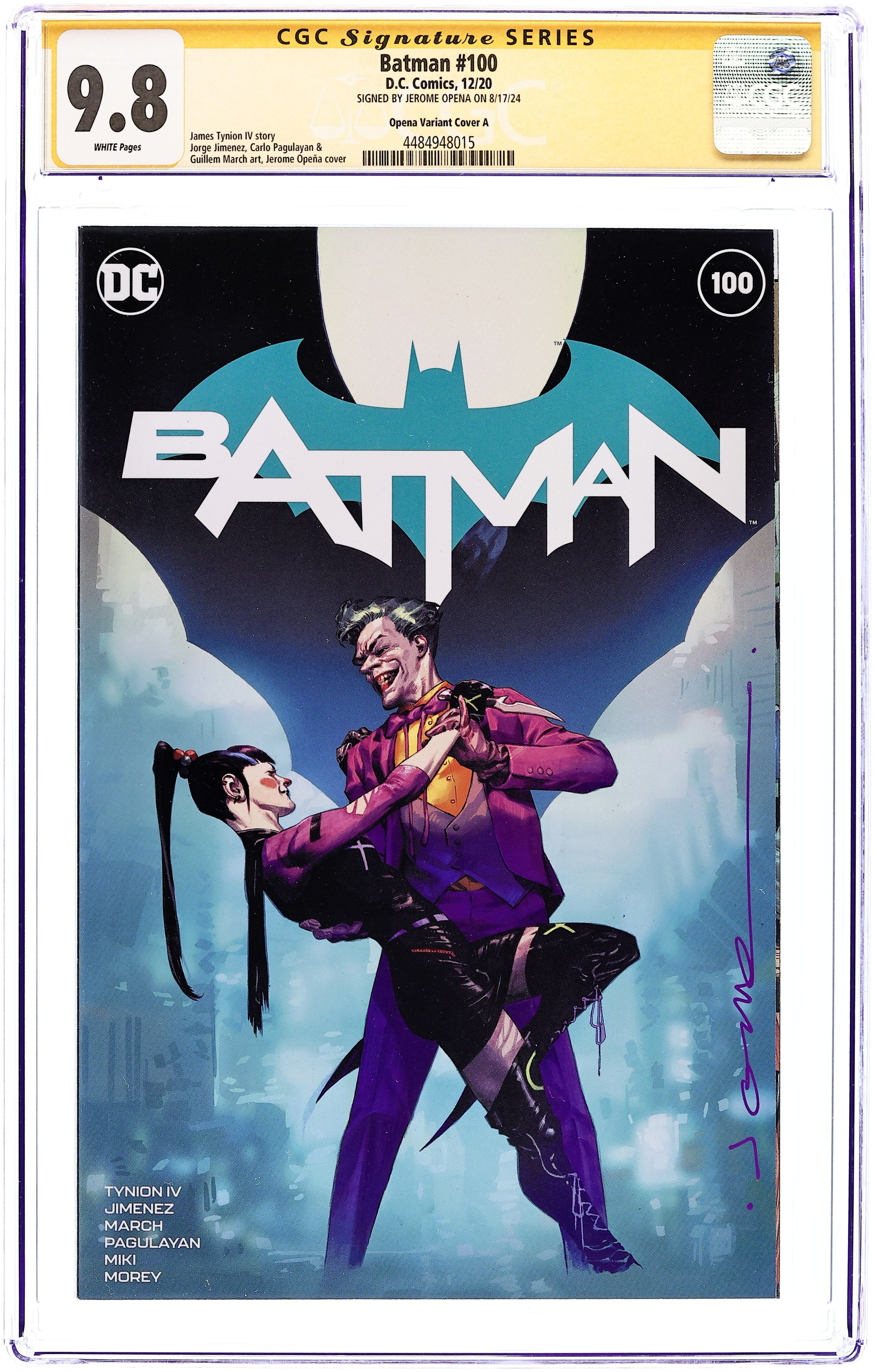 Comics Elite exclusive cover by Lucio Parrillo. The Joker War: Part 6 of 6. Written by James Tynion IV. Art by Jorge Jimenez, Carlo Pagulayan, Guillem March and Danny Miki. The Joker War comes to a city-shattering conclusion as Batman battles The Joker in a brutal, no-holds-barred duel! This is a fight 80 years in the making, and its outcome won't just change Batman's life -- it will change Gotham City for years to come! Plus, catch the first glimpse of the new villain known as Ghost-Maker! It's all in "The Joker War Finale" by James Tynion IV and Jorge Jimenez. And after the senses-shattering conclusion of The Joker War come a pair of back-up stories that will chart what's to come in this series and in Gotham City! Don't miss the first showdown between Batman and Clownhunter in "Intervention" by Tynion IV, Carlo Pagulayan and Danny Miki, plus "Dead Ringer" by Tynion IV and Guillem March, which leads into Punchline Special (2020 DC) #1. 56 pages, full color. Ages 13+