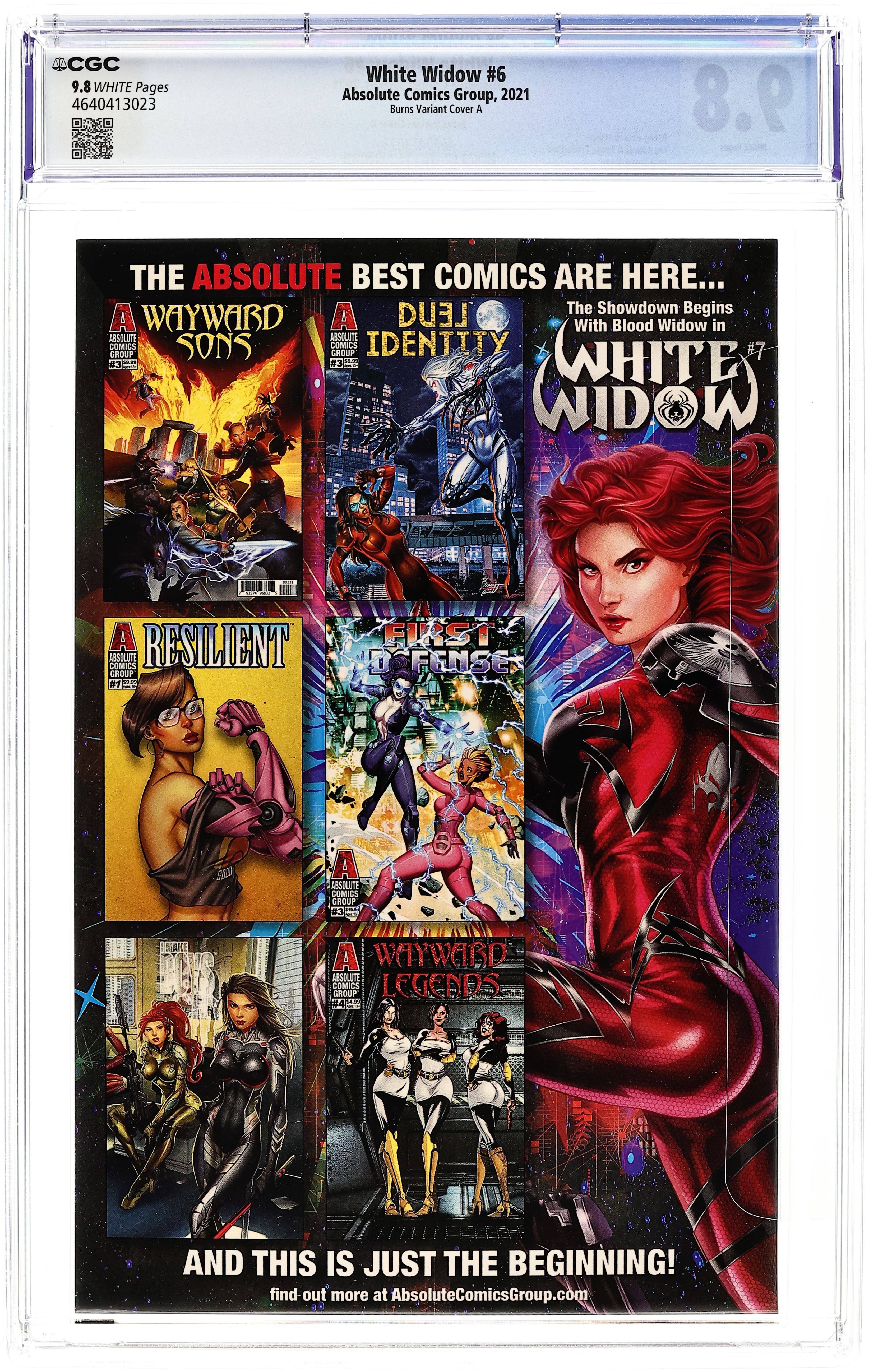 Published 2021 by Absolute Comics Group.White Widow (2018 Absolute Comics Group) 6BURNS.A CGC 9.8