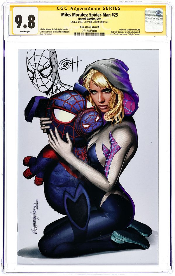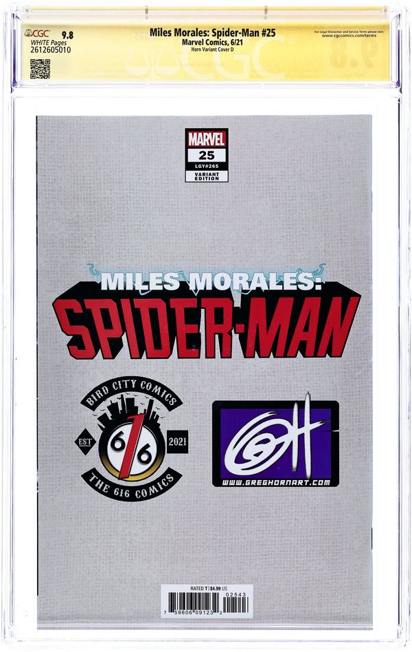 Tags: Marvel Legacy Numbering: Spider-Man (Ultimate) (part 265), Spider-ManMiles Morales Spider-Man (2019 Marvel) 25BIRDCITY.D CGC 9.8 SS Horn Horn Bird City Virgin Variant