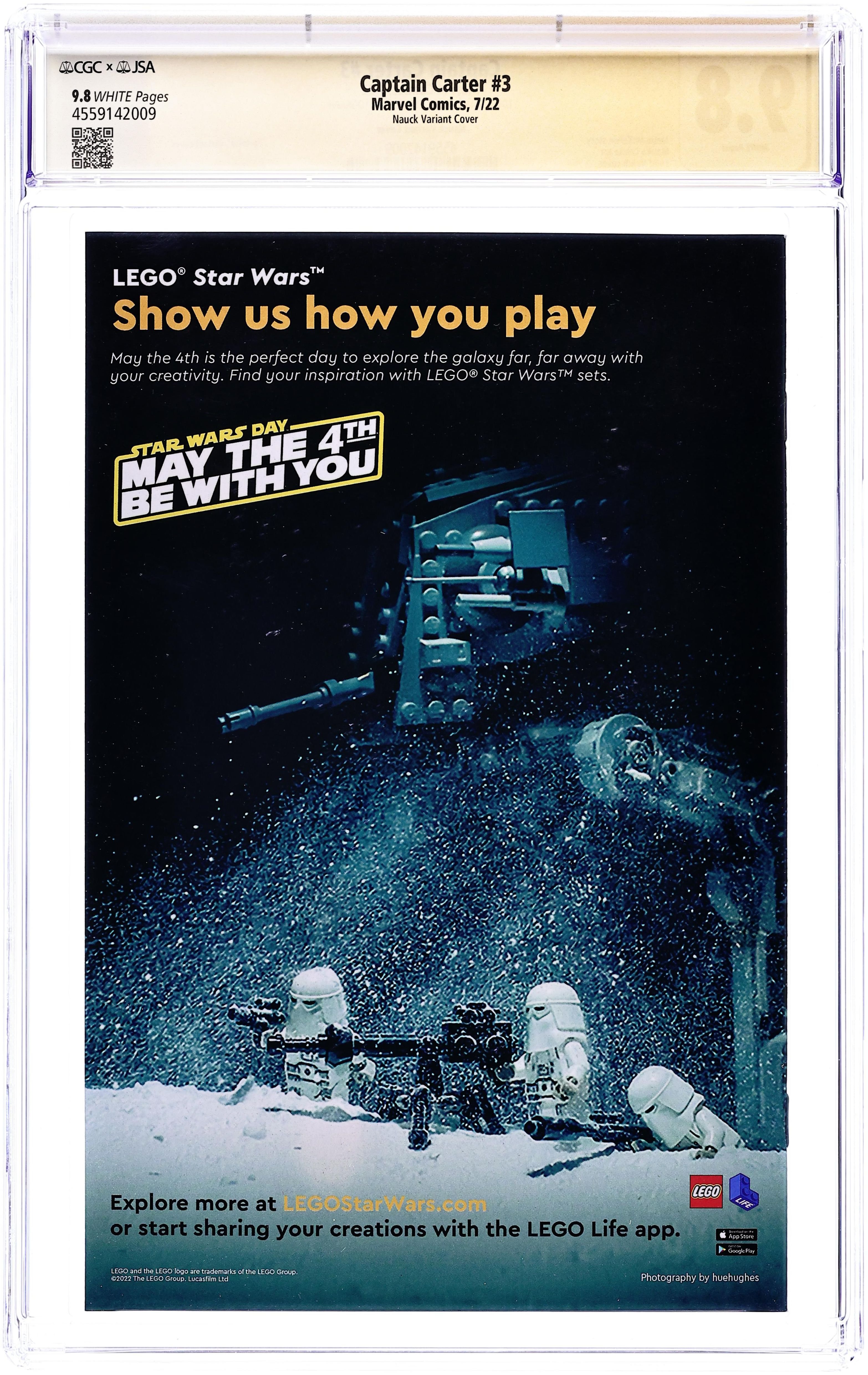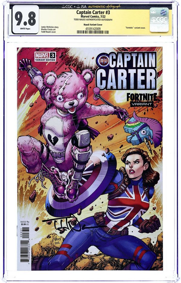 Written by Jamie McKelvie. Art by Marika Cresta. Cover by Todd Nauck. ENTER IRON MAN! Captain Carter has plenty on her hands already, wrestling with a betrayal from the very organization she thought she could trust. Is Tony Stark here to help? Or will he be just another complication at a time when Peggy's life is full of them? 28 pages, full color. Rated T+ Cover price $3.99.