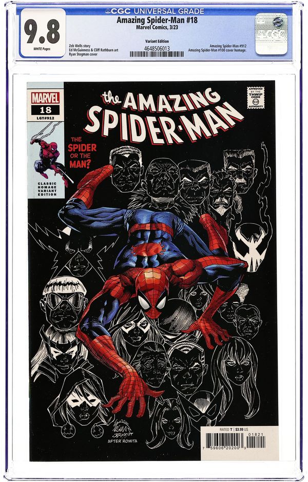 Comics Illuminati (Unknown Comics, Comic Traders, Anti-Hero Gallery, and The 616 Comics) exclusive Virgin Cover by Sabine Rich. Written by Zeb Wells. Art by Ed McGuinness. As if the normal run-of-the-mill demons of Limbo weren't enough… Spider-Man finds himself facing a small army of demonized versions of his rogues' gallery! Can he make it home to stop Chasm and the Goblin Queen?! 28 pages, full color. Rated Teen+
