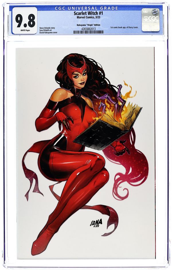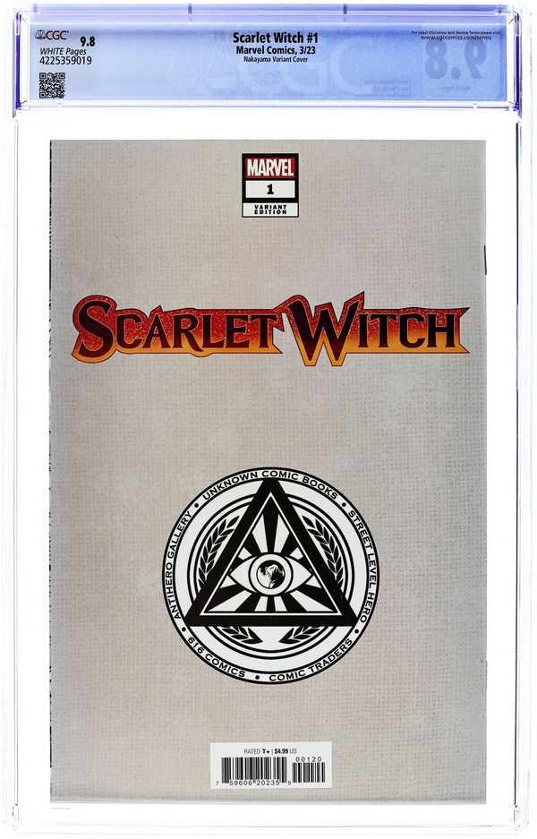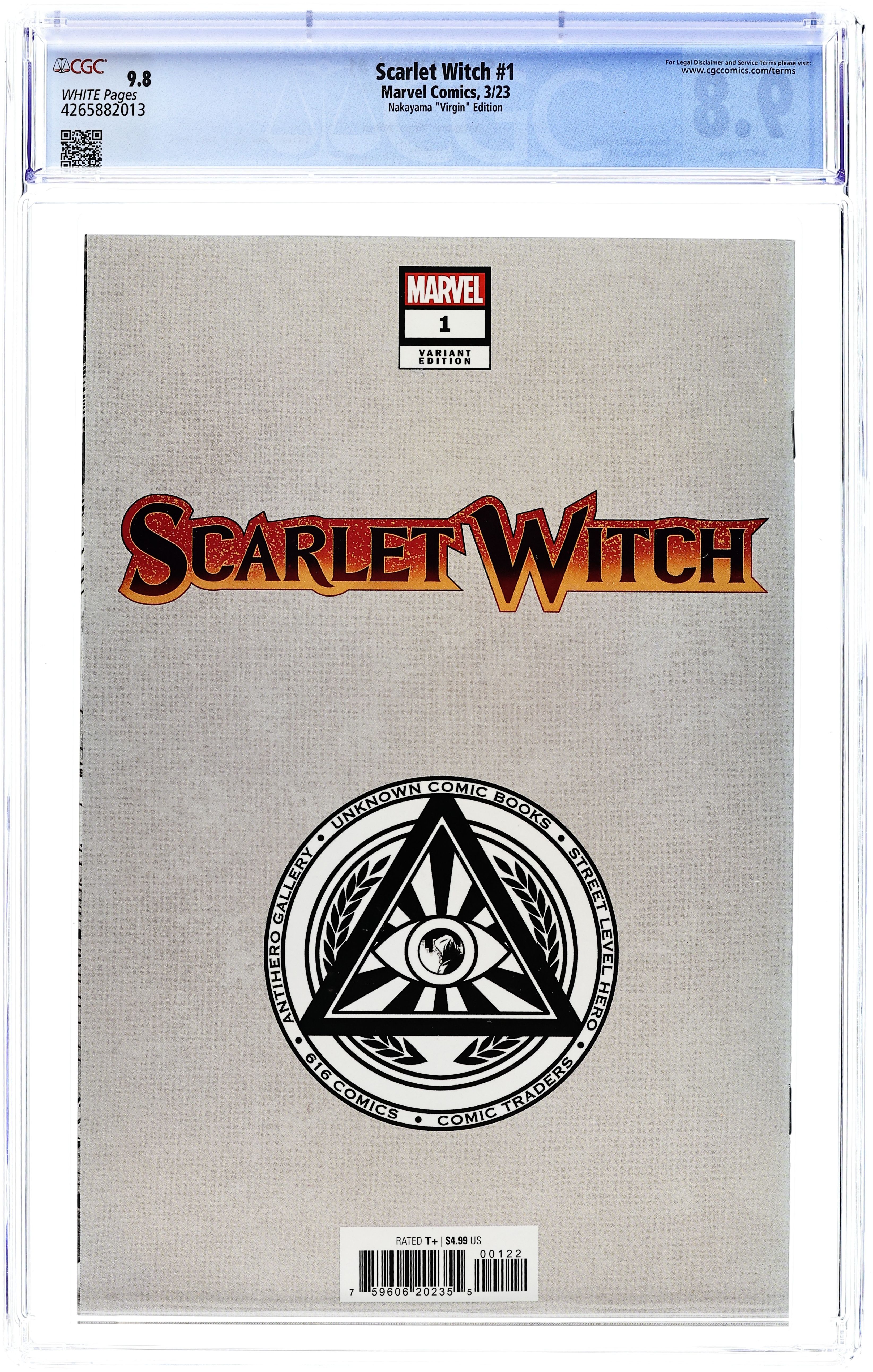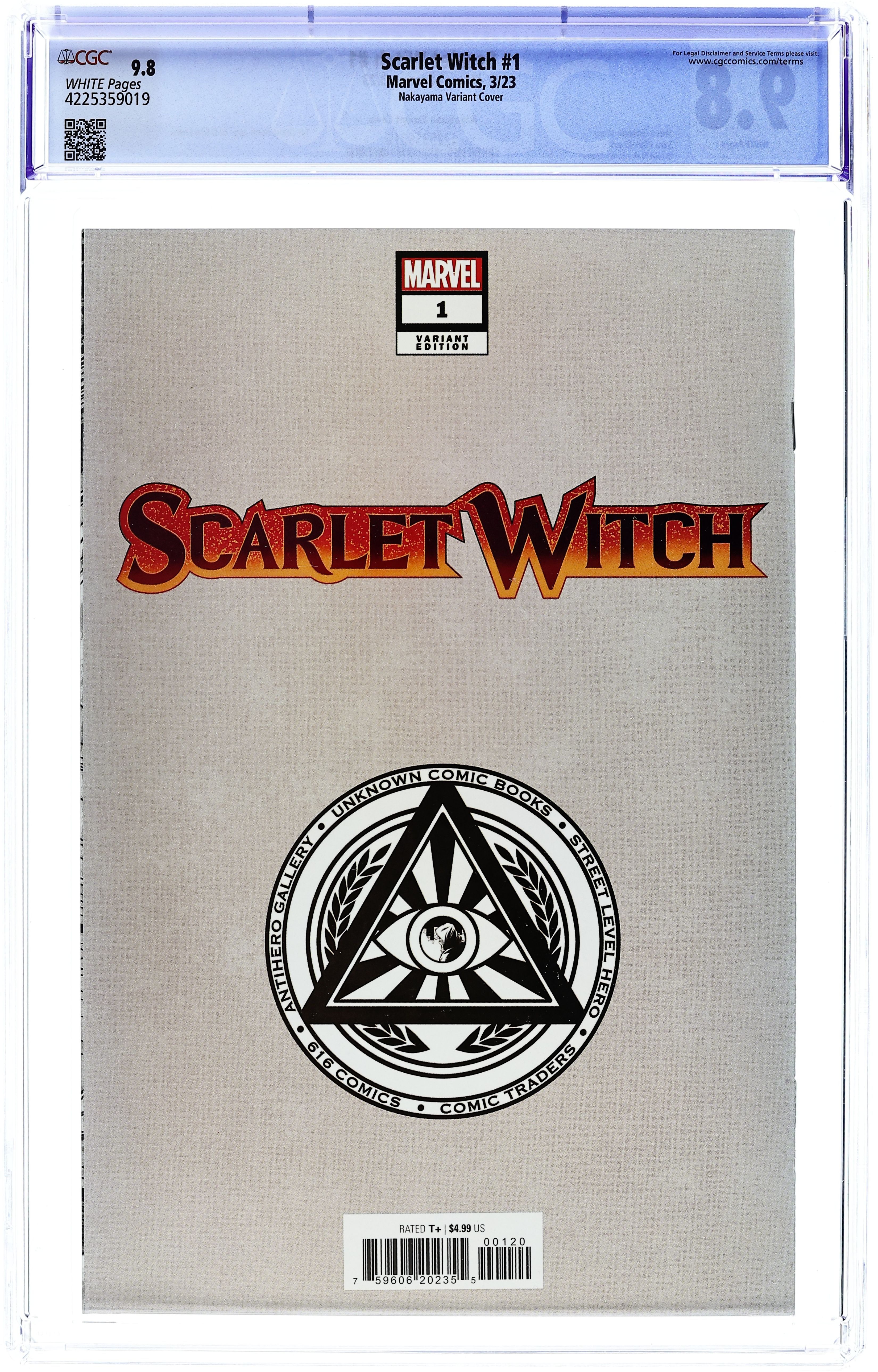 Comics Illuminati (Unknown Comics, Street Level Hero, Comic Traders, Anti-Hero Gallery, and The 616 Comics) Exclusive Virgin Cover by David Nakayama. Written by Steve Orlando. Art by Sara Pichelli. Cover by Adam Hughes. THE SCARLET WITCH RETURNS! There is a door that appears only to those who need it most, who have no one else in the world to turn to. On the other side of this door is the witchcraft shop. Friend or foe, human or otherwise-if your need is great and your hope is gone, there you will meet the SCARLET WITCH! Wanda Maximoff is familiar with hitting rock bottom-and now that she's finally found peace, she's pledged all her power to help others who are languishing at their lowest. But when a woman falls through Wanda's door with a terrifying story of a town gone mad, the Scarlet Witch will have to muster her wits and chaos magic to deal with an insidious threat! Comic powerhouses Steve Orlando (MARAUDERS; Midnighter) and Sara Pichelli (ULTIMATE SPIDER-MAN; SPIDER-MEN) join forces to open a groundbreaking new chapter in the Scarlet Witch's history! 40 pages, full color. Rated T+