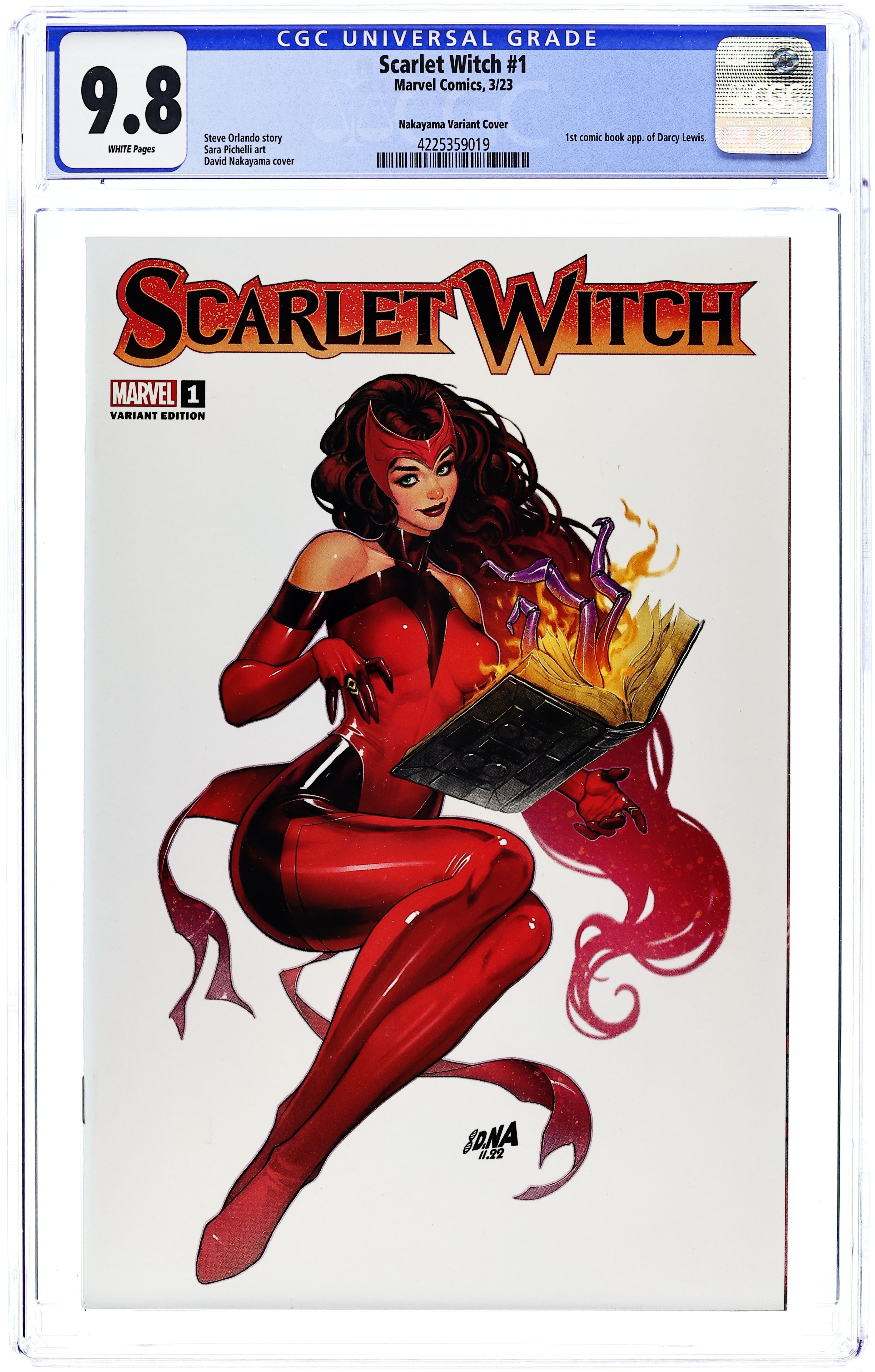 Comics Illuminati (Unknown Comics, Street Level Hero, Comic Traders, Anti-Hero Gallery, and The 616 Comics) Exclusive Cover by David Nakayama. Written by Steve Orlando. Art by Sara Pichelli. Cover by Adam Hughes. THE SCARLET WITCH RETURNS! There is a door that appears only to those who need it most, who have no one else in the world to turn to. On the other side of this door is the witchcraft shop. Friend or foe, human or otherwise-if your need is great and your hope is gone, there you will meet the SCARLET WITCH! Wanda Maximoff is familiar with hitting rock bottom-and now that she's finally found peace, she's pledged all her power to help others who are languishing at their lowest. But when a woman falls through Wanda's door with a terrifying story of a town gone mad, the Scarlet Witch will have to muster her wits and chaos magic to deal with an insidious threat! Comic powerhouses Steve Orlando (MARAUDERS; Midnighter) and Sara Pichelli (ULTIMATE SPIDER-MAN; SPIDER-MEN) join forces to open a groundbreaking new chapter in the Scarlet Witch's history! 40 pages, full color. Rated T+