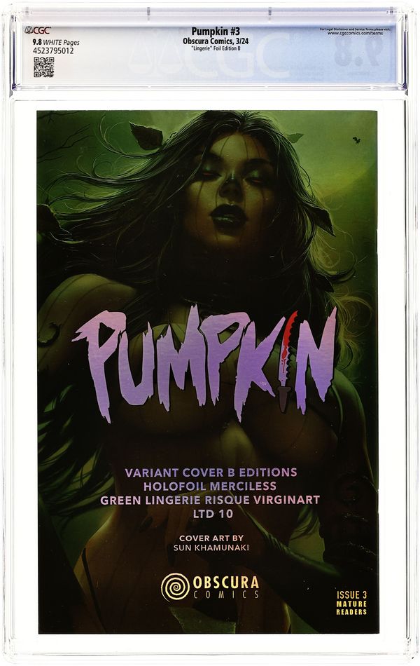 Published Mar 2024 by Obscura Comics.Pumpkin (2023 Obscura) 3B.D.FOIL CGC 9.8
