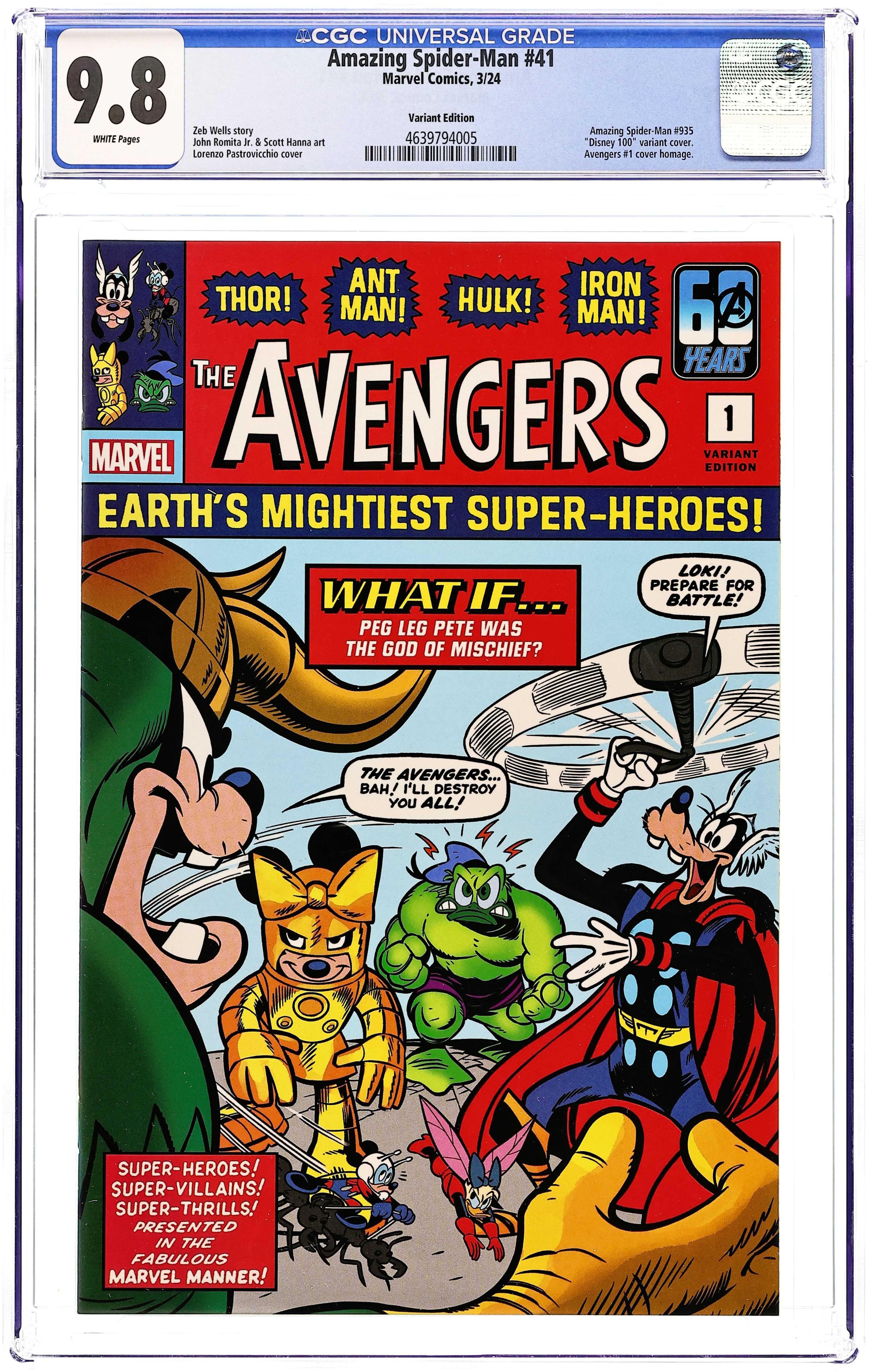 NOTE: This is a variant cover for Amazing Spider-Man #41, NOT Avengers. Written by Zeb Wells. Art by John Romita Jr. Cover by Lorenzo Pastrovicchio. GANG WAR CONTINUES! With all of New York's super underworld fighting for dominance, you didn't think Wilson Fisk, the former Kingpin of Crime, would sit it out, did you? 32 pages, full color. Rated T+ Cover price $4.99.If you add this item to your want list, we will email you when it becomes available.