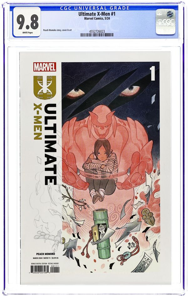 Written by Peach Momoko. Art by Peach Momoko. Cover by Peach Momoko. Visionary creator PEACH MOMOKO (DEMON DAYS, STAR WARS) creates a new generation of X-Men for an all-new universe! Hisako Ichiki is a teenage girl who just wants to live a normal life - go to school, hang out with her friends, ignore the political strife broiling over after the events of ULTIMATE INVASION - but life has other plans for her. In Japan, urban legends have sprung to life and brought some unusual new powers with them…Meet Armor, Maystorm and a group of new Ultimate X-Men the likes of which you've never seen before! 40 pages, full color. Rated T+ Cover price $5.99.
