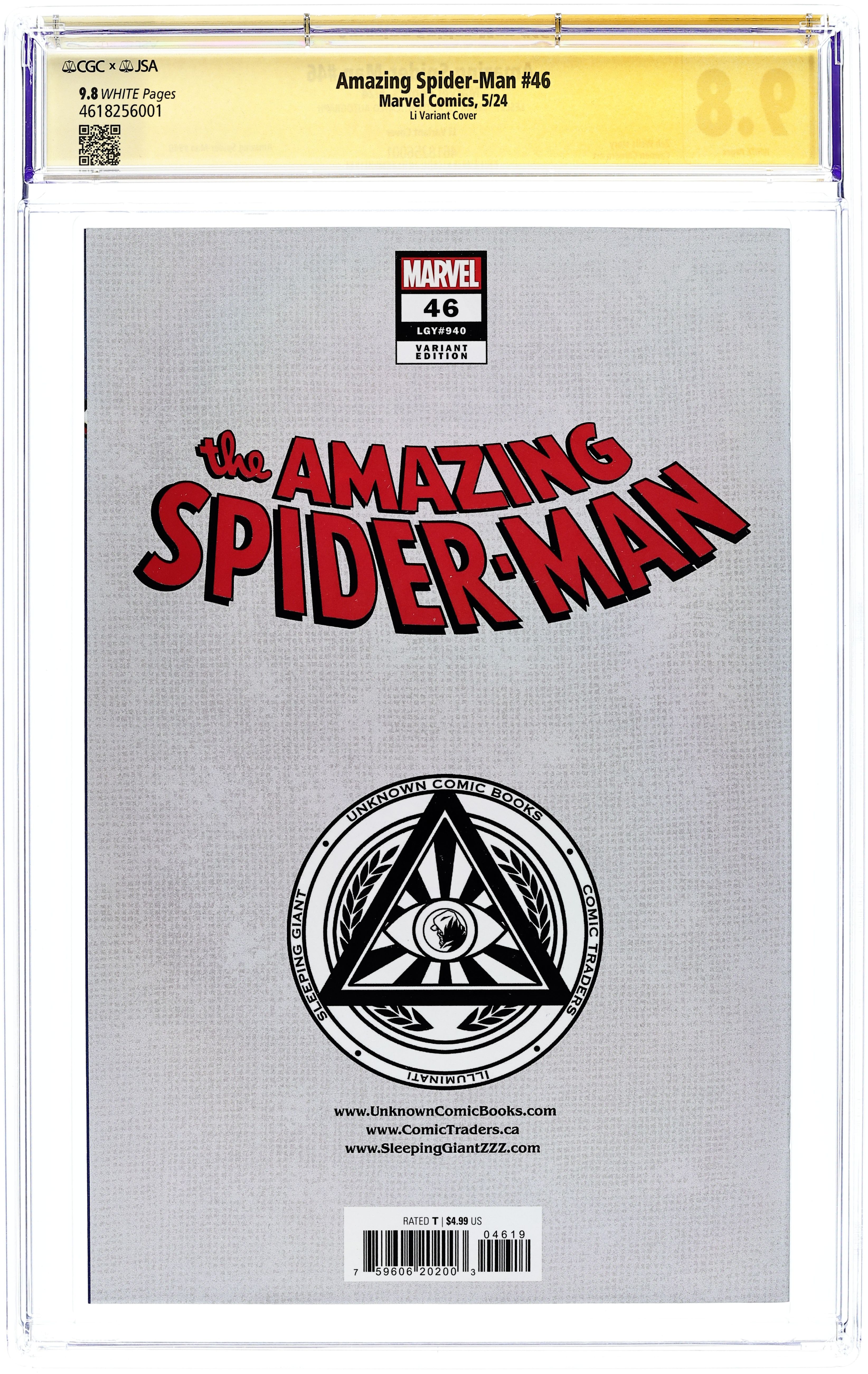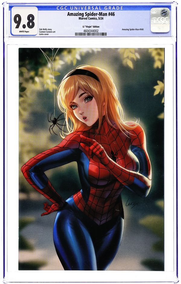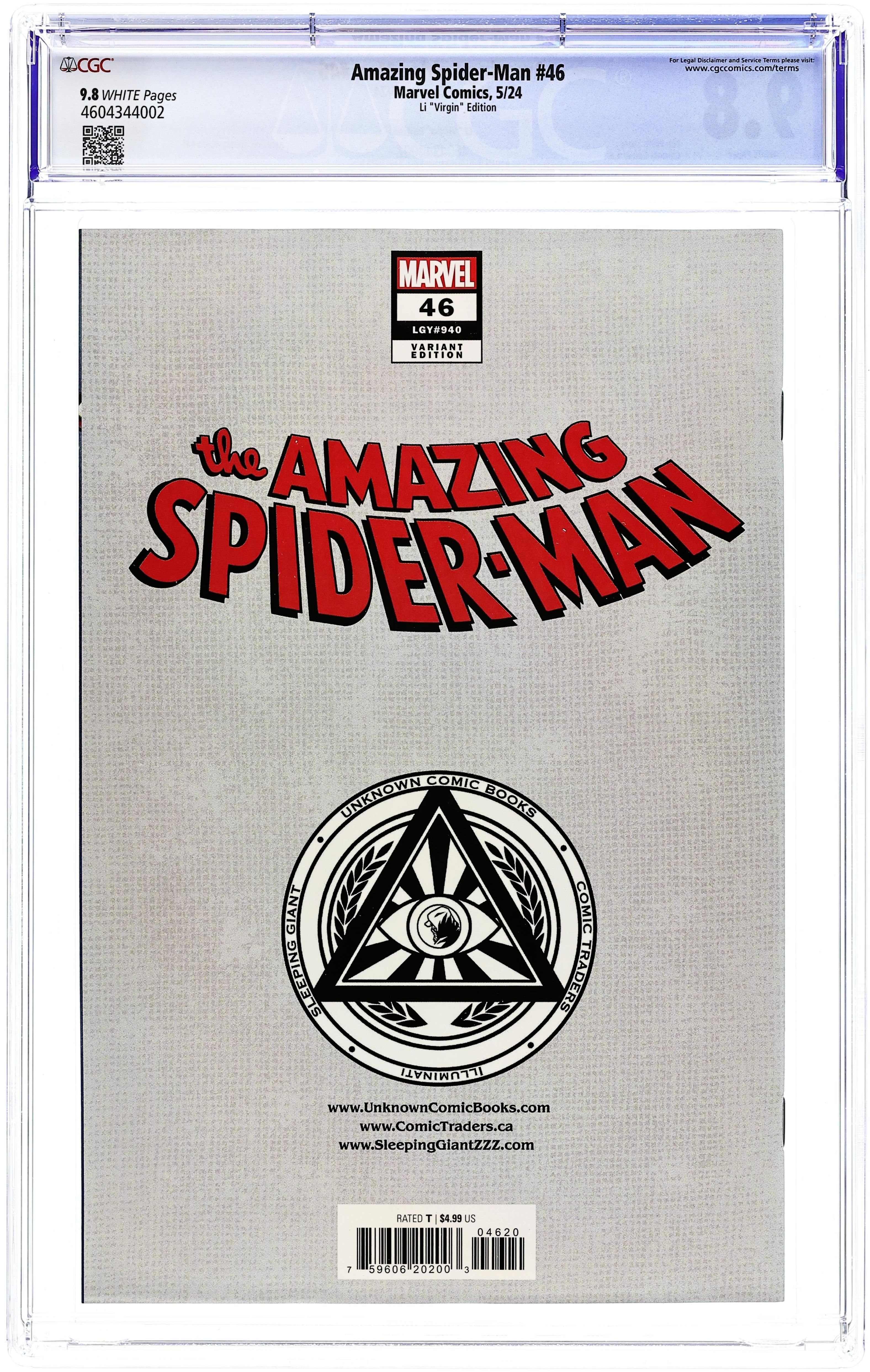 Comics Illuminati (Unknown Comics, Comic Traders, and Sleeping Giant) Exclusive Virgin Cover by Leirix Li. Written by Zeb Wells. Art by Carmen Carnero. Spidey is cleaning up the mess that is his life after some of the most harrowing conflicts of his life. Electro isn't going to wait for Spidey to figure his problems out, though. A dangling thread from earlier in the run that you forgot was dangling starts to pull the sweater apart! 32 pages, full color. Rated T