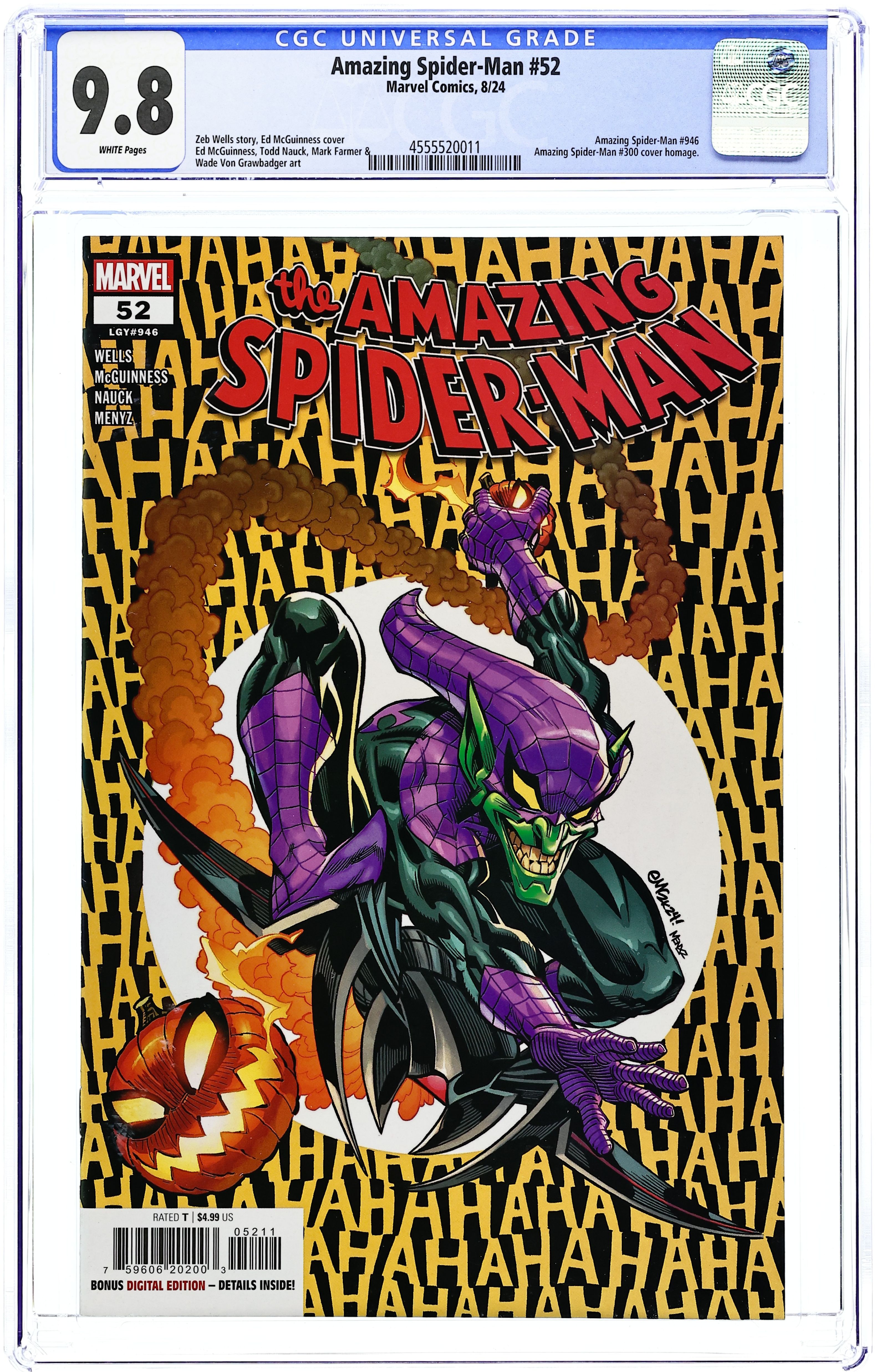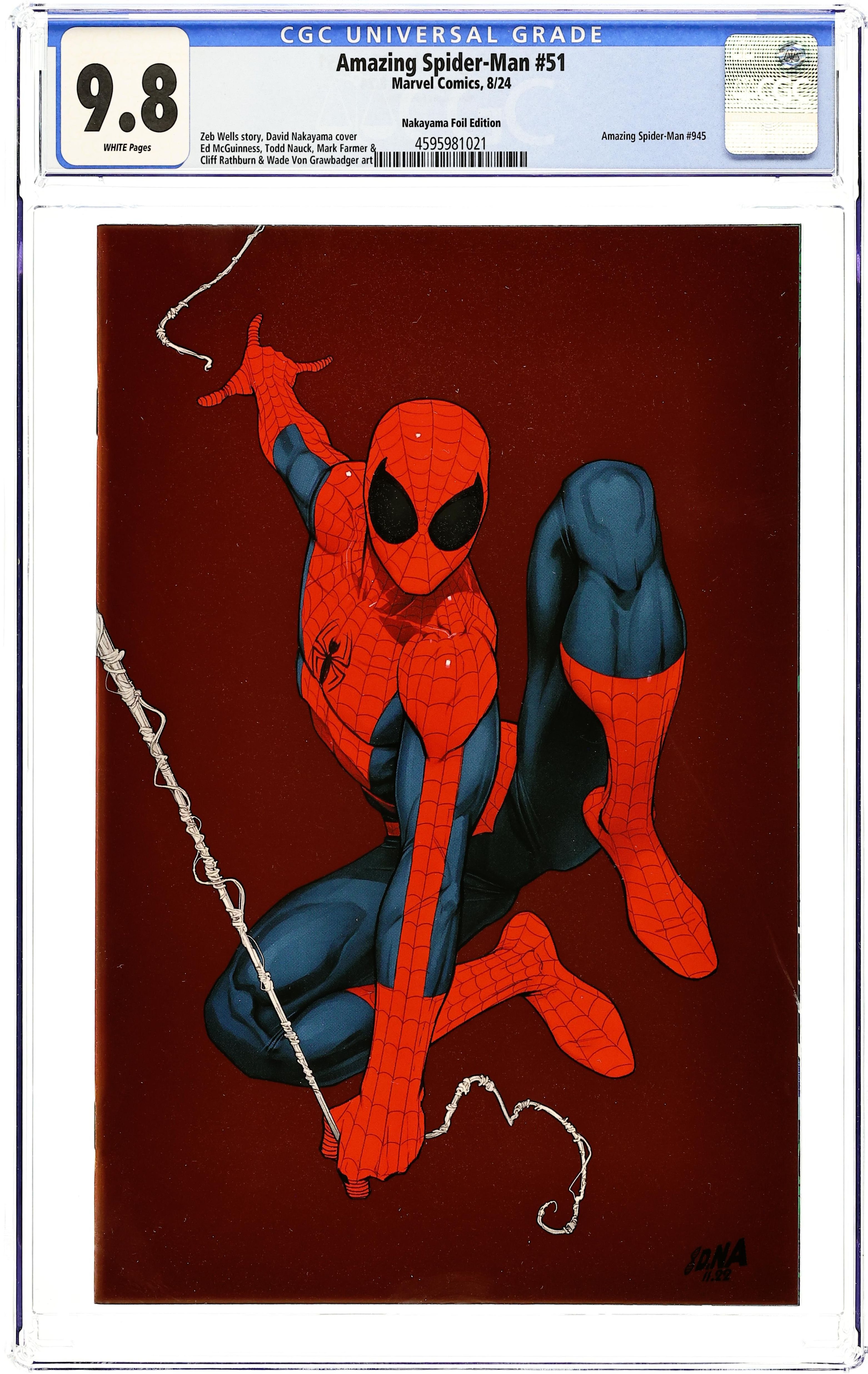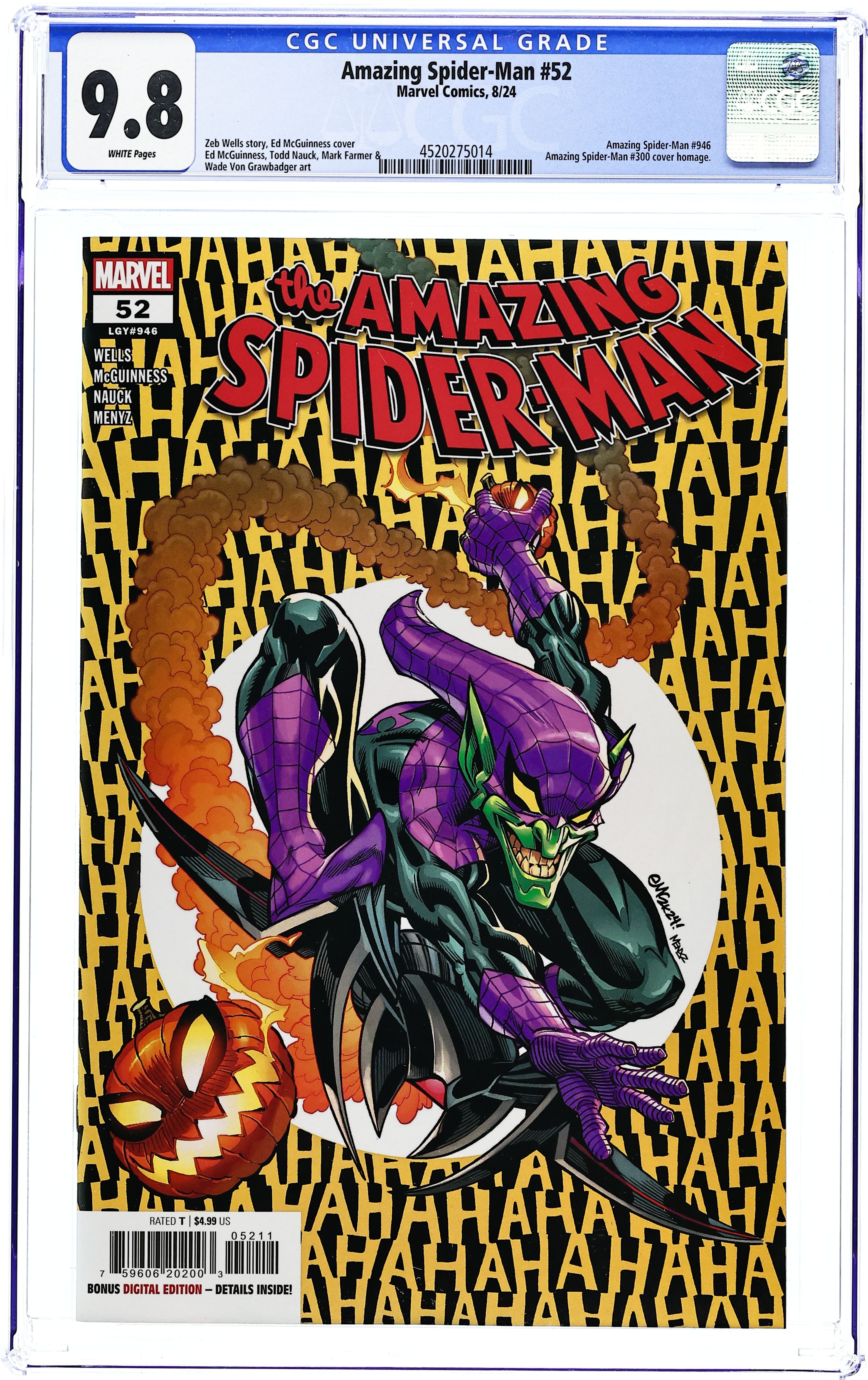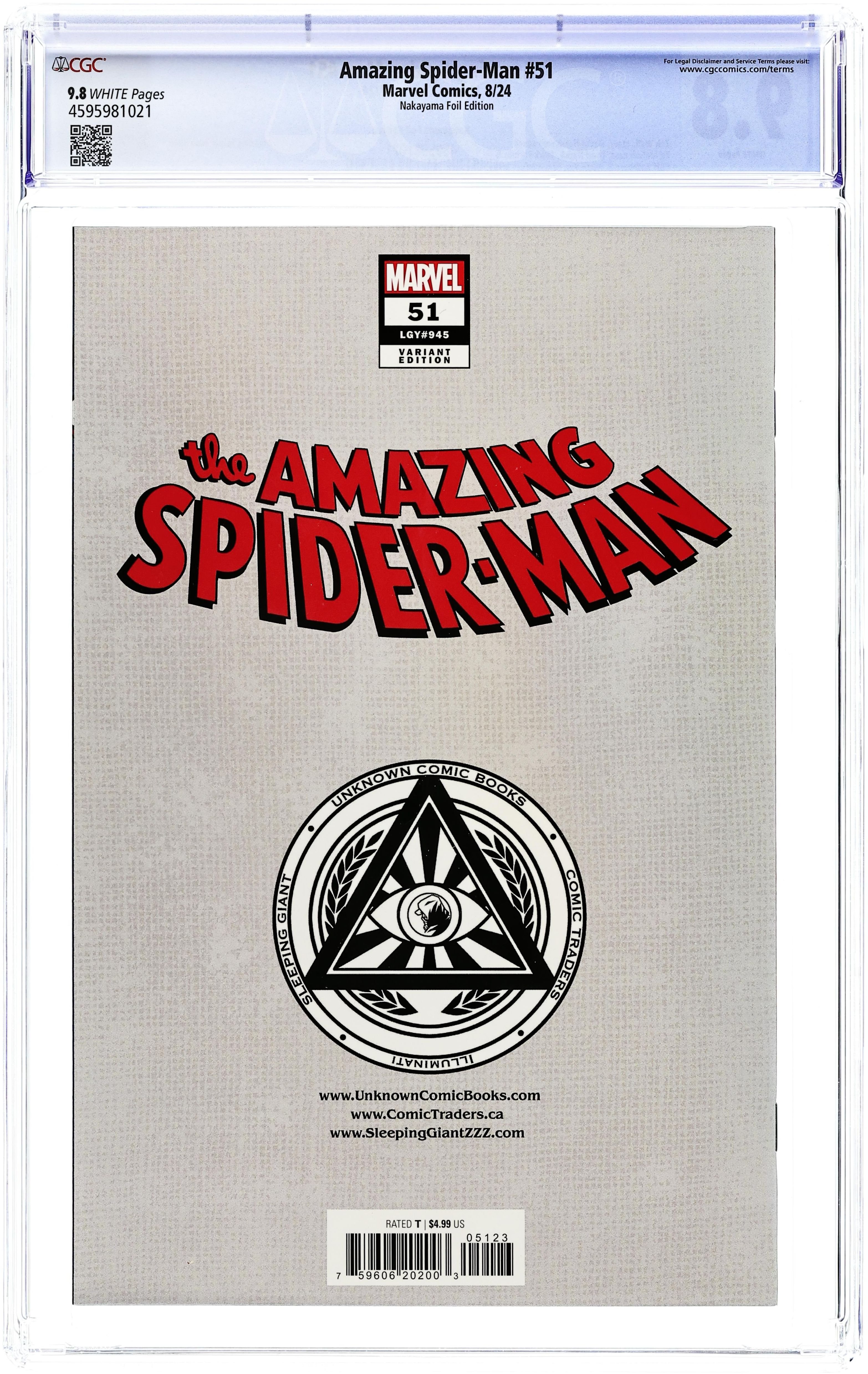 Comics Illuminati (Unknown Comics, Comic Traders, and Sleeping Giant) Exclusive Foil Edition Virgin Cover by David Nakayama. Written by Zeb Wells. Art by Ed McGuinness. THE SINISTER SIX IS BACK! • As if the Green Goblin weren't enough, the Sinister Six has returned too!!! • When it rains, it pours – and this rain is going to put Spider-Man into a world of hurt! 32 pages, full color. Rated T