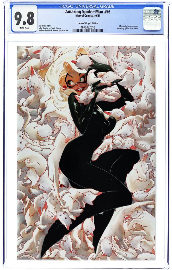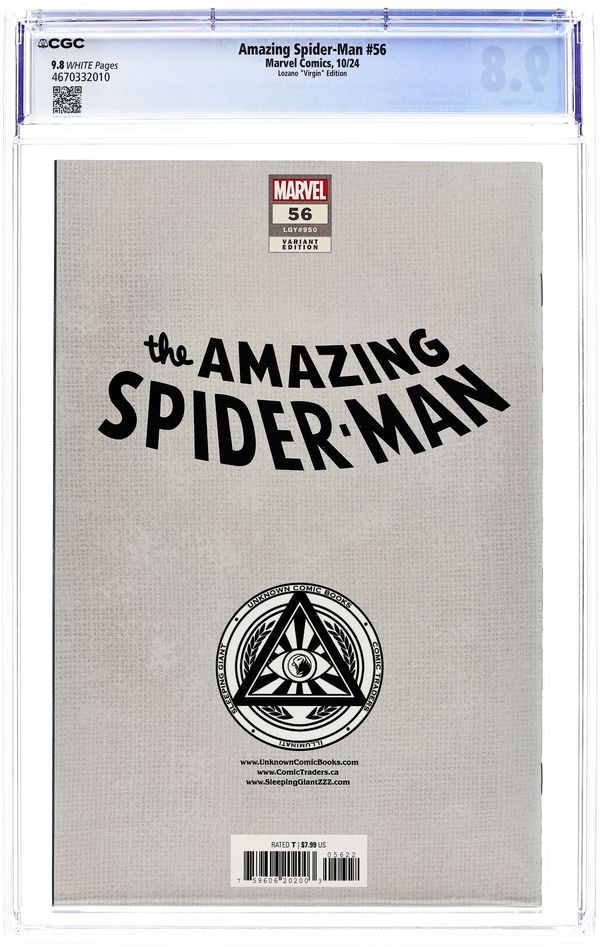 Comics Illuminati (Unknown Comics, Comic Traders, and Sleeping Giant) Exclusive Virgin Cover by Ejikure. Written by Zeb Wells. Art by Emilio Laiso. Cover by Luciano Vecchio. The last arc nearly killed Spider-Man (others weren't so lucky). Peter hopes to take a breath but gets a new challenge to face in this, the 949th legacy issue of AMAZING SPIDER-MAN! This is the last domino to fall as we head into our next big centennial! 32 pages, full color. Rated T