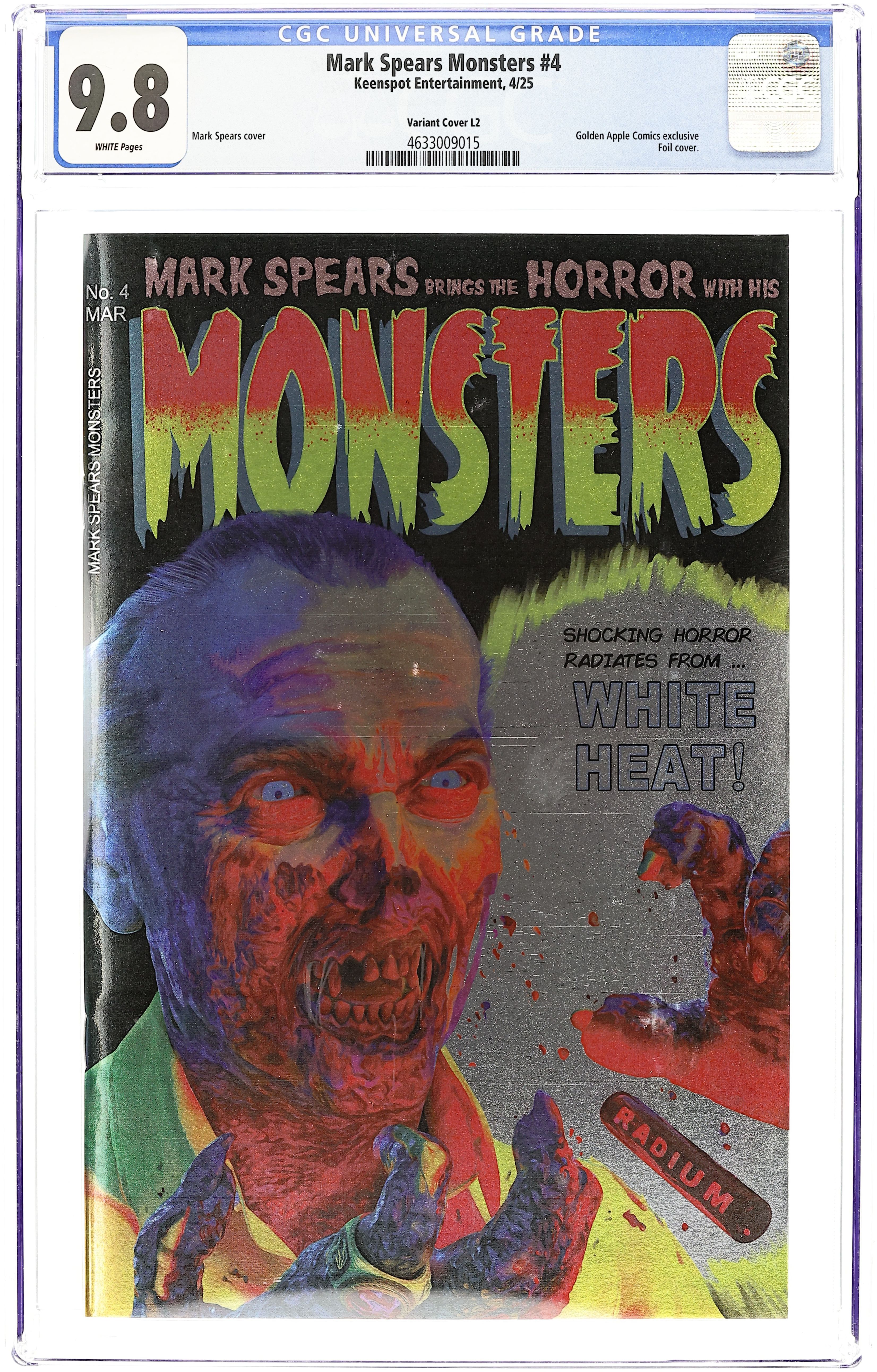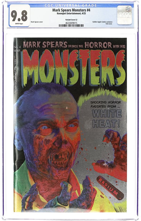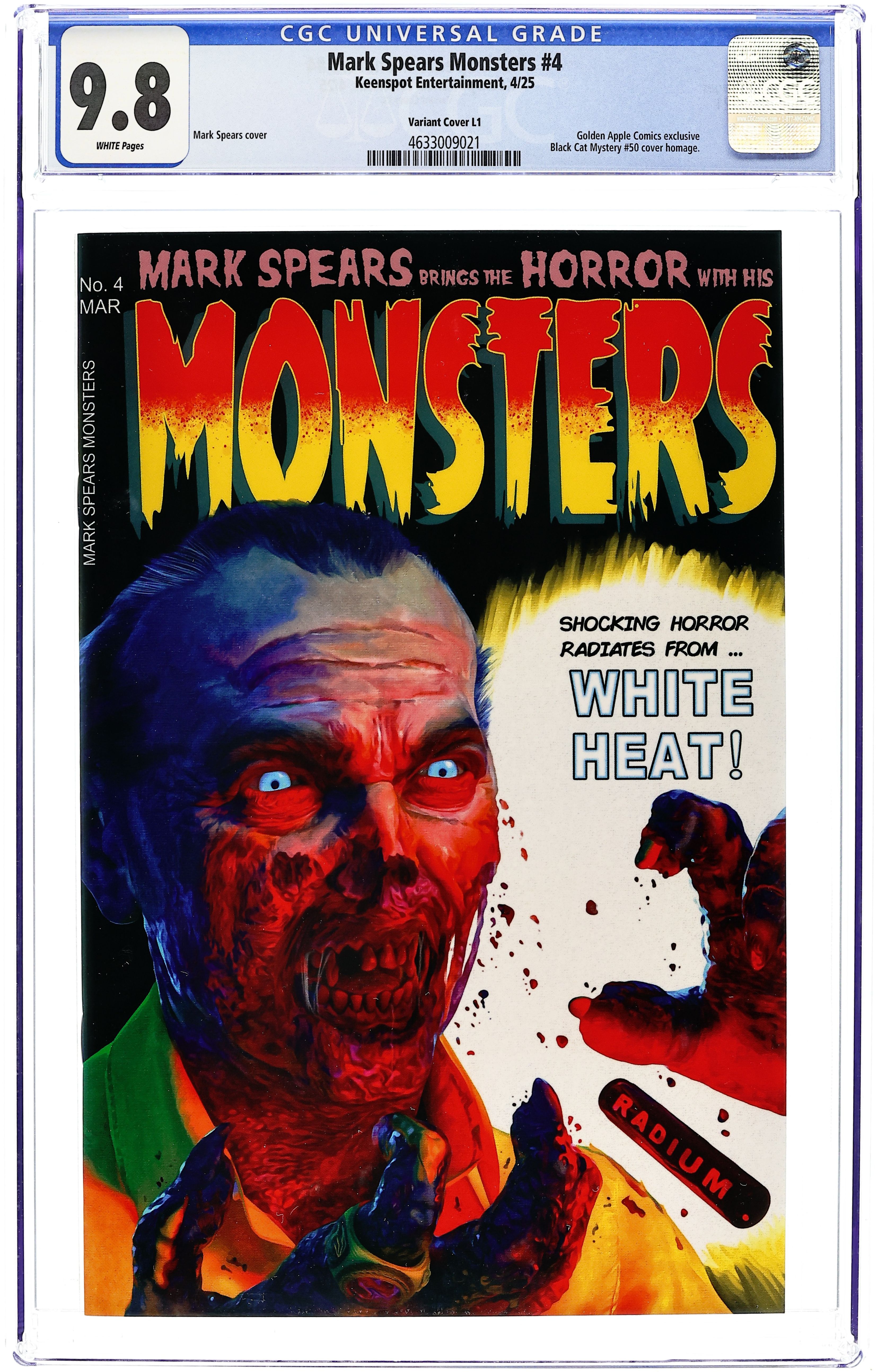 Golden Apple Comics Exclusive Foil Edition Variant Cover by Mark Spears. Cover homage to Black Cat Mystery #50. Written and Art by Mark Spears. Richie, Mikey, and Spaz set out to explore the eerie, long-abandoned Crowley estate, hoping for adventure but instead uncovering a horror far beyond their imaginations. Meanwhile, the local sheriff detains a mysterious drifter, suspecting he may be behind the strange events plaguing the town. As an ancient evil begins to emerge, the stage is set for a pulse-pounding journey that will leave readers breathless! 24 pages, full color.