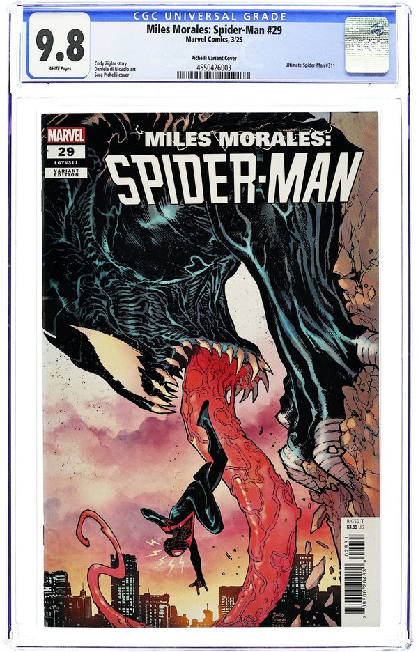 Written by Cody Ziglar. Art by Daniele Di Nicuolo. Cover by Sara Pichelli. FIGHT TO THE (UN)DEATH! Can SPIDER-MAN hope to defeat BLACK PANTHER at the height of his powers in the heart of his homeland?! 28 pages, full color. Rated T Cover price $3.99.