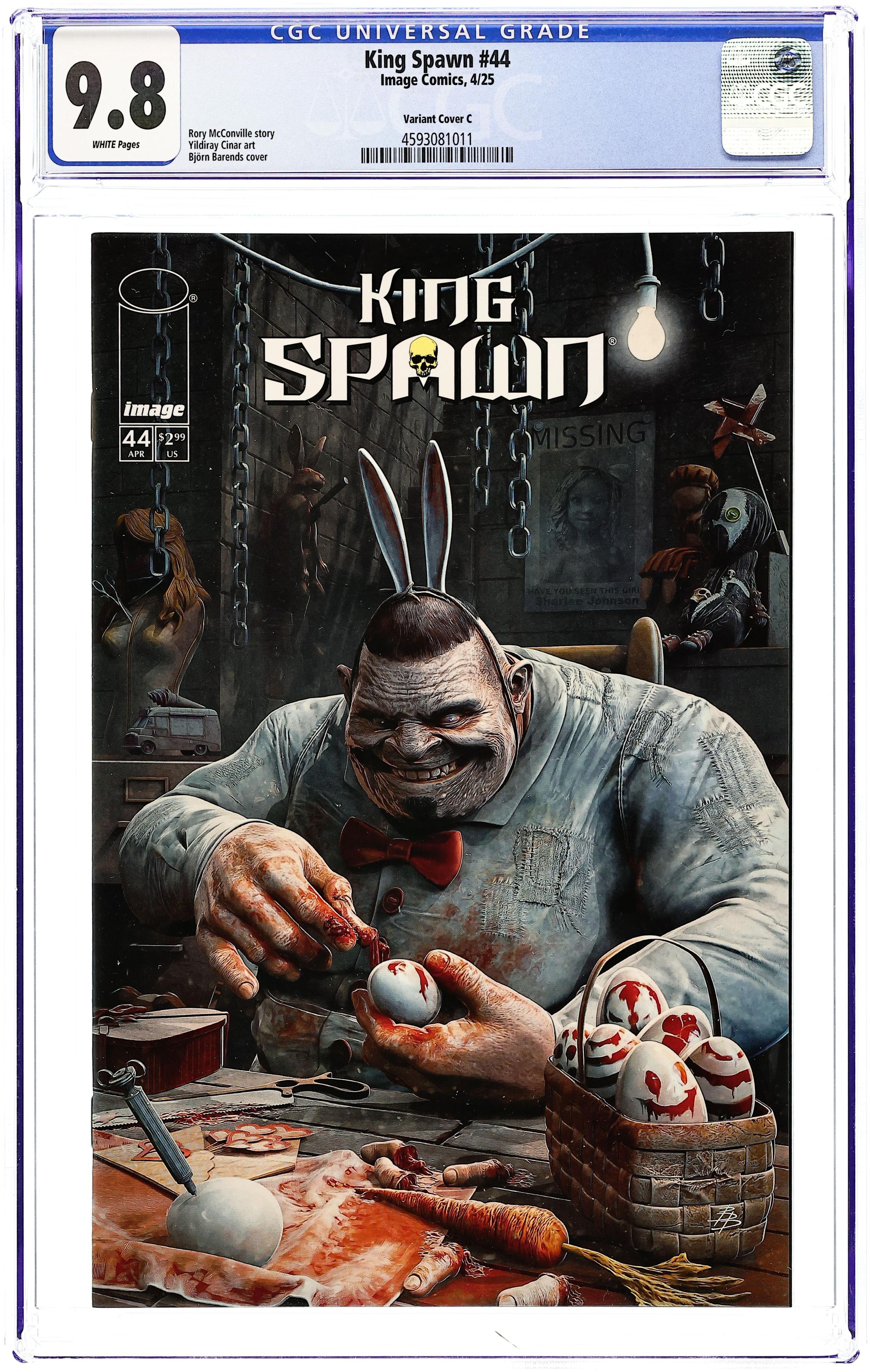 Written by Rory McConville. Art by Yildiray Cinar. Cover by Bjorn Barends. Al Simmons has been fighting for years, but he is not gaining any ground in protecting humanity from the creatures that lurk in the dark. Realizing this, Spawn starts to reevaluate his mission. 24 pages, full color. Cover price $2.99.