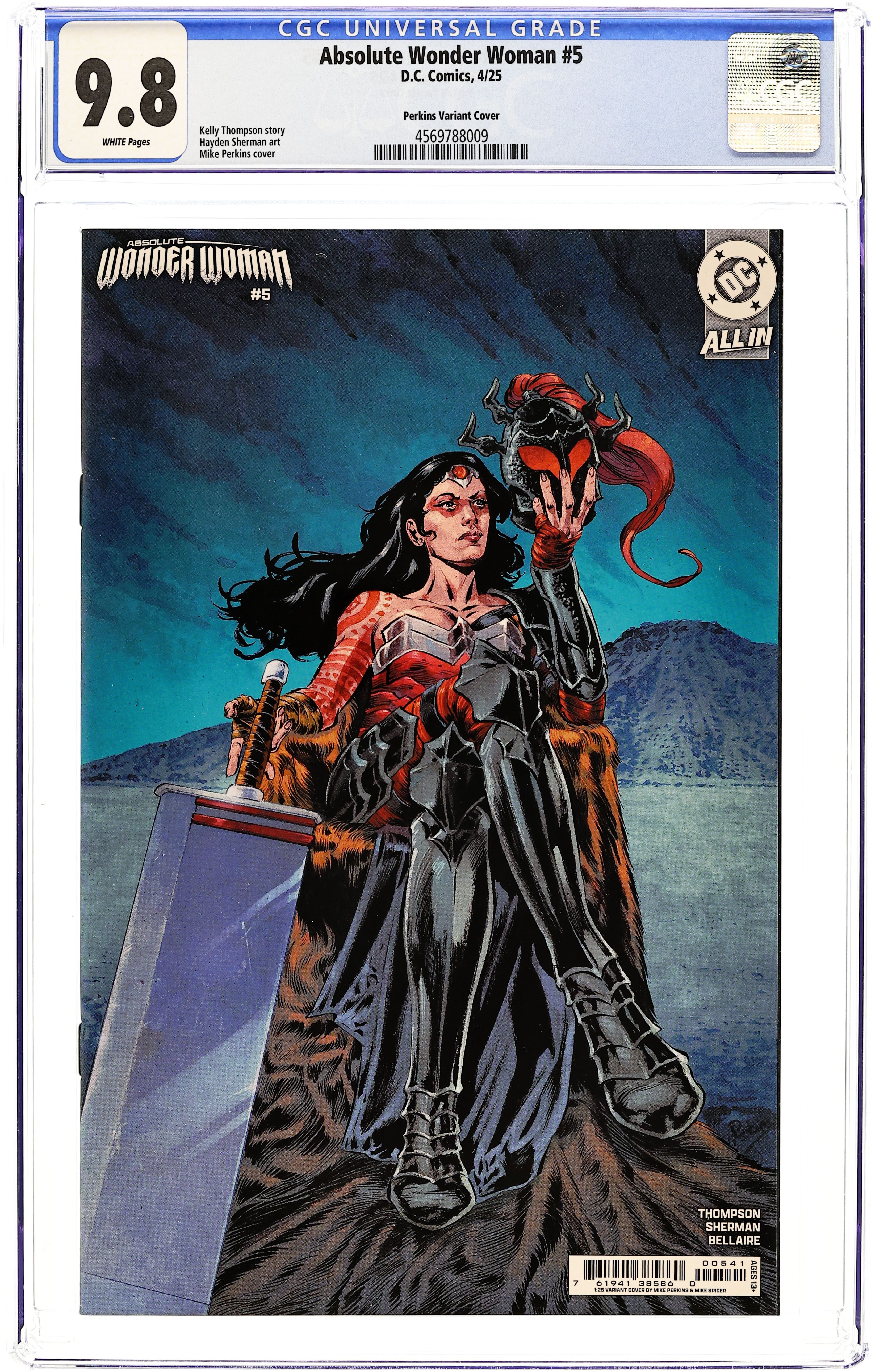 Limited 1 for 25 Retailer Incentive Variant Cover. Written by Kelly Thompson. Art by Hayden Sherman. Cover by Mike Perkins. A COSMIC THREAT ENCROACHES ON GATEWAY CITY! Wonder Woman has thrown everything she can think of at The Tetracide, and still it pushes forward, devouring Gateway City. With everything on the line, Diana has one big idea left, but in her current state, she has nowhere near the power she needs to pull it off... 32 pages, full color. Rated T+ Cover price $5.99.