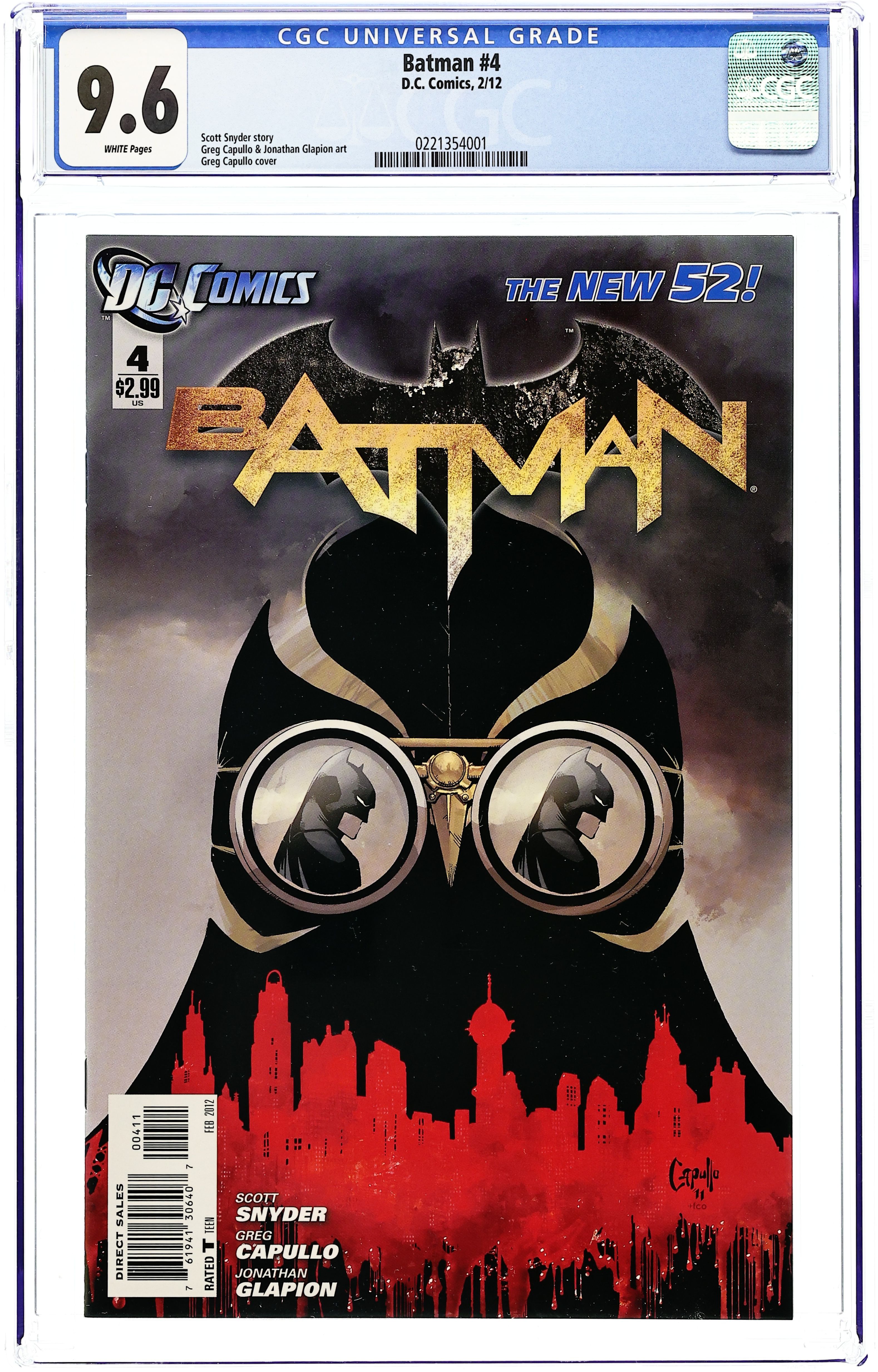 NOTE: This issue was originally polybagged with a digital download code and may or may not be polybagged when purchased. Cover by Greg Capullo Night of the Owls Tie-In - (W) Scott Snyder (A) Greg Capullo & Various BATMAN takes the fight to THE COURT OF OWLS! Discover the evil mastermind behind THE COURT. Plus: The 'Fall of the House of Wayne' backup by SCOTT SNYDER, JAMES TYNION IV and RAFAEL ALBUQUERQUE. Cover price $4.99.