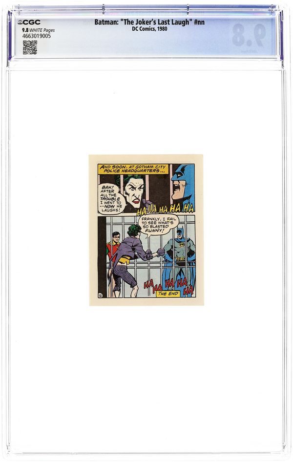1st Printing. Batman matches wits with his arch nemesis The Joker in this critically acclaimed, prestige format one-shot. He also laughs at one of his jokes. The book is infamous for the scene in which The Joker shoots and cripples Barbara Gordon, effectively ending her crime fighting career as Batgirl. Written by Alan Moore, with art by Brian Bolland. 52 pages, full color. NOTE: 1st Printing, title is printed in lime green embossed ink. All others are later printings. Cover price $3.50.