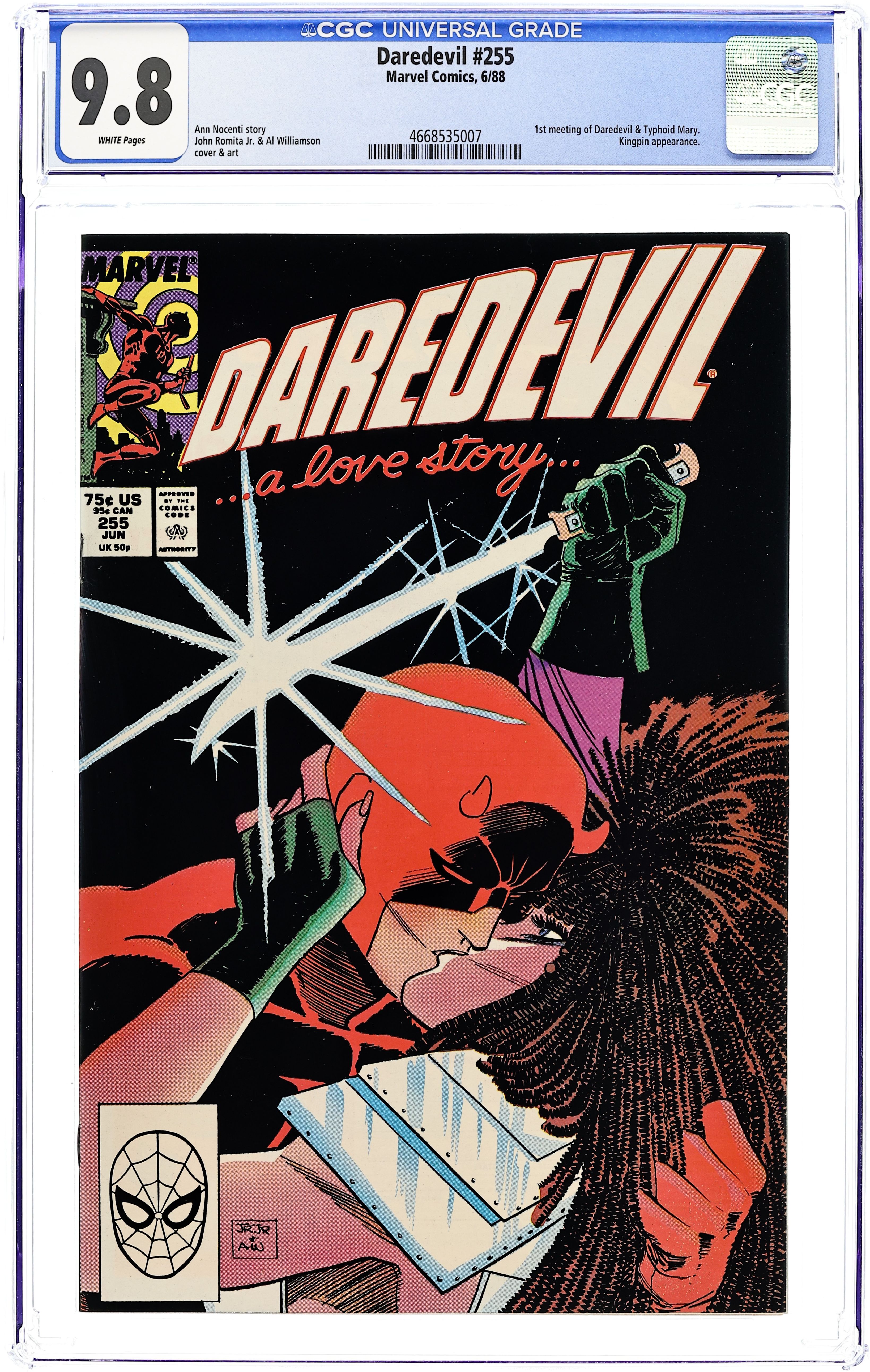Newsstand Edition. Cover pencils by John Romita, Jr., inks by Al Williamson. Second appearance of Typhoid in Temptation!, script by Ann Nocenti, pencils by John Romita, Jr., inks by Al Williamson; Matt struggles to help his team win the court case against Kelco and the Kingpin; DD battles Typhoid for the first time. 32 pgs. Cover price $0.75. Cover price $0.75.