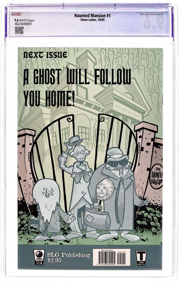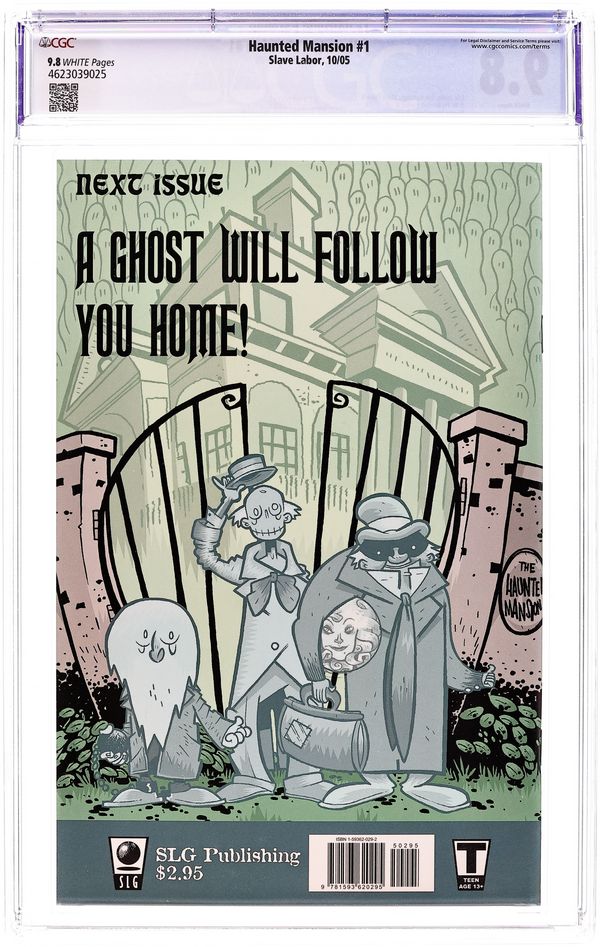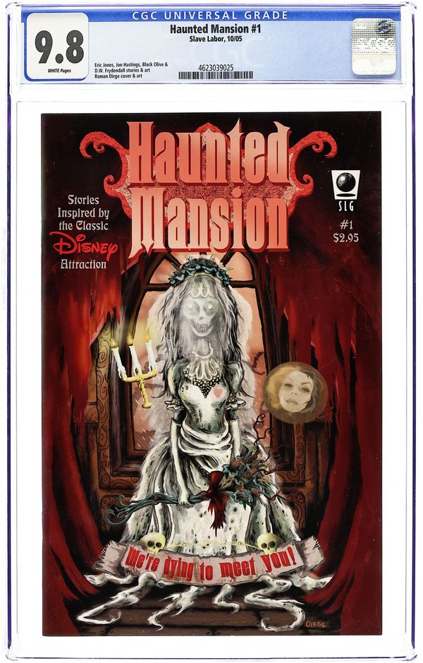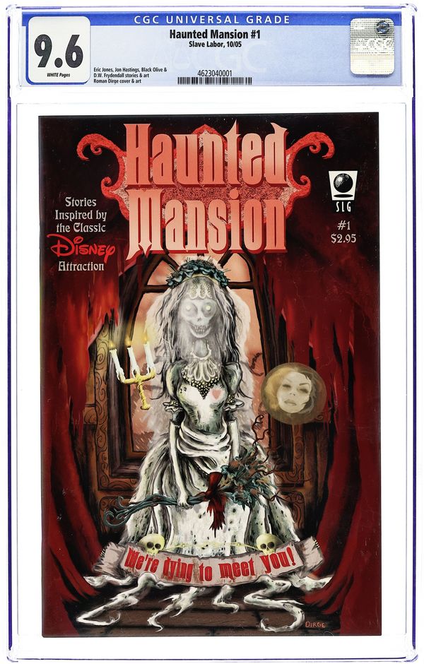 by Roman Dirge and various. Welcome foolish mortals to The Haunted Mansion. Featuring stories inspired by the favorite Disney attraction, The Haunted Mansion is a bi-monthly anthology comic featuring some of SLG's favorite creators. Not based on the movie, Haunted Mansion will tell the stories of the 999 happy haunts that call the mansion home. The first issue features a cover by Lenore creator Roman Dirge. Interior stories will feature work by Dirge, Serena Valentino, Darren W. Frydenhall, Jon 'Bean' Hastings and a host of others. Cover price $2.95.