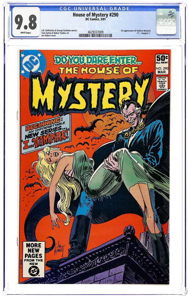 Direct Edition. 1st "I... Vampire!" Cover by Joe Kubert. Featuring: 1 page House of Mystery introduction written by Len Wein and drawn by Greg Curry; 10 page I... Vampire! story "I... Vampire!" starring Andrew Bennett (introduction), Deborah Dancer, Dmitri Mishkin and Mary Seward (flashback), written by J.M. DeMatteis and drawn by Tom Sutton; 5 page story "An Exercise in Fear" written by Murray Boltinoff (as Bill Dennehy) and drawn by Ernie Chan; 7 page story "Special Defects" written by George Kashdan & Don Glut (story idea) and drawn by Ruben Yandoc; 1 page Cain's Game Room story by Dave Manak. 36 Pages, Full Color. Cover price $0.50.