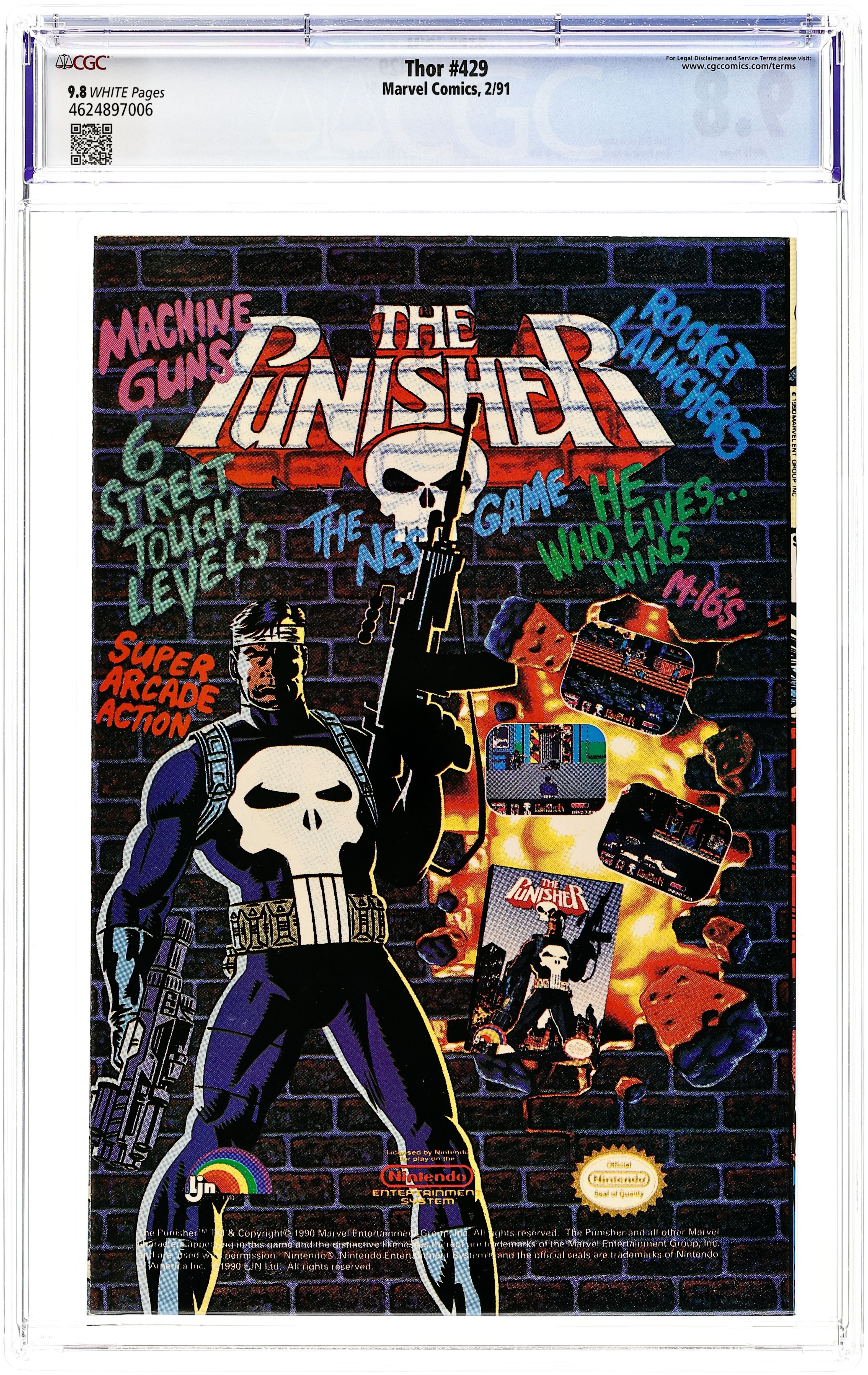 Direct Edition. Cover pencils by Ron Frenz, inks by Joe Sinnott. Acts of Vengeance crossover. First full appearance of the New Warriors in "Introducing the New Warriors," script by Ron Frenz (Co-plot) and Tom DeFalco, pencils by Ron Frenz (layouts), inks by Joe Sinnott (finished art); With Thor down for the count, the New Warriors arrive and battle the Juggernaut; Thor recovers his strength and joins the fray as he and the kids are finally able to banish Juggy to another dimension. Beta Ray Bill back-up, "Freedom Is Only A Choice Away," script by Tom DeFalco, pencils by Ron Lim, inks by Mike DeCarlo; Bill has been trapped and is being used to help power a spaceship that feeds off of psychic energy; When the people of his race are threatened, however, he breaks free and faces Captain Orack. 36 pgs., full color. $1.00. Cover price $1.00.