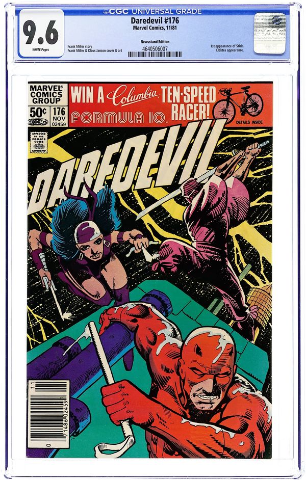 Direct Edition. Cover pencils by Frank Miller, inks by Frank Miller and Klaus Janson. First appearance of Stick in Hunters, script by Frank Miller, pencils by Frank Miller (breakdowns) and Klaus Janson (finished art), inks by Klaus Janson; DD and Elektra hunt down Matt's old teacher Stick; Turk steals the Mauler uniform to try and take down DD; Elektra has a final confrontation with Kirigi. 32 pgs. Cover price $0.50. Cover price $0.50.