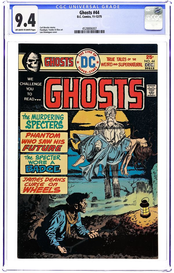 Cover by Luis Dominguez. Featuring: 6 page story "The Phantom Who Saw His Future" drawn by Noly Panaligan; 3 page story "The Specter Wore a Badge" written by Martin Pasko and drawn by Ruben Yandoc; 6 page story "The Case of the Murdering Specters" written by Carl Wessler and drawn by Lee Elias; 3 page story "James Dean's Curse on Wheels" drawn by John Calnan. Cover price $0.25.