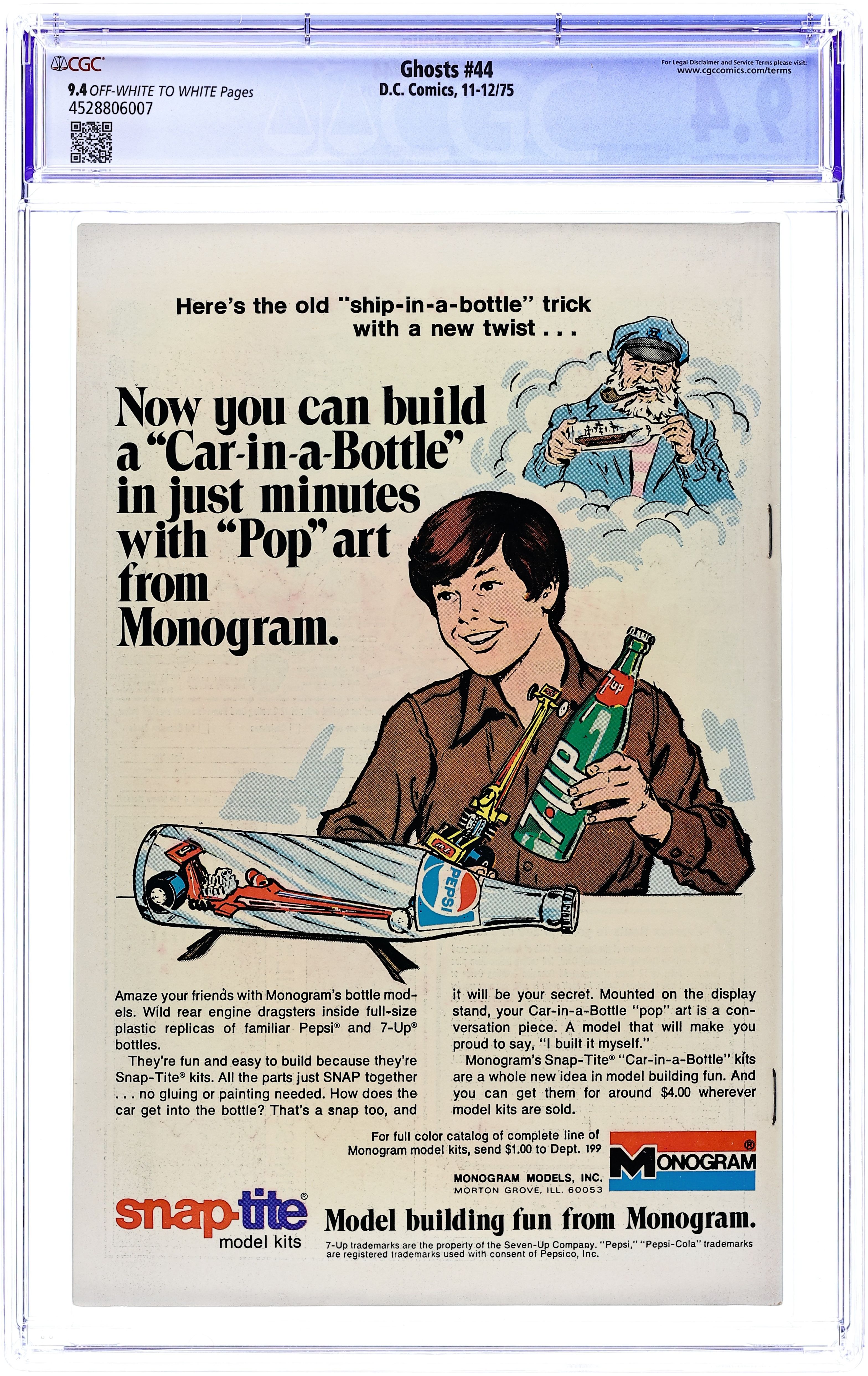 Cover by Luis Dominguez. Featuring: 1 page intro story "Ghosts and the Supernatural" written by Murray Boltinoff and drawn by E.R. Cruz; 6 page story "The Phantom Hoaxer!" written by George Kashdan and drawn by Bill Draut; 3 page story "Hollywood Hauntings" written by Murray Boltinoff and drawn by John Calnan; 7 page story "To Kill a Raging Wraith" written by Carl Wessler and drawn by Ruben Yandoc; 1 page text story "The Genie and the Ghost." Cover price $0.35.
