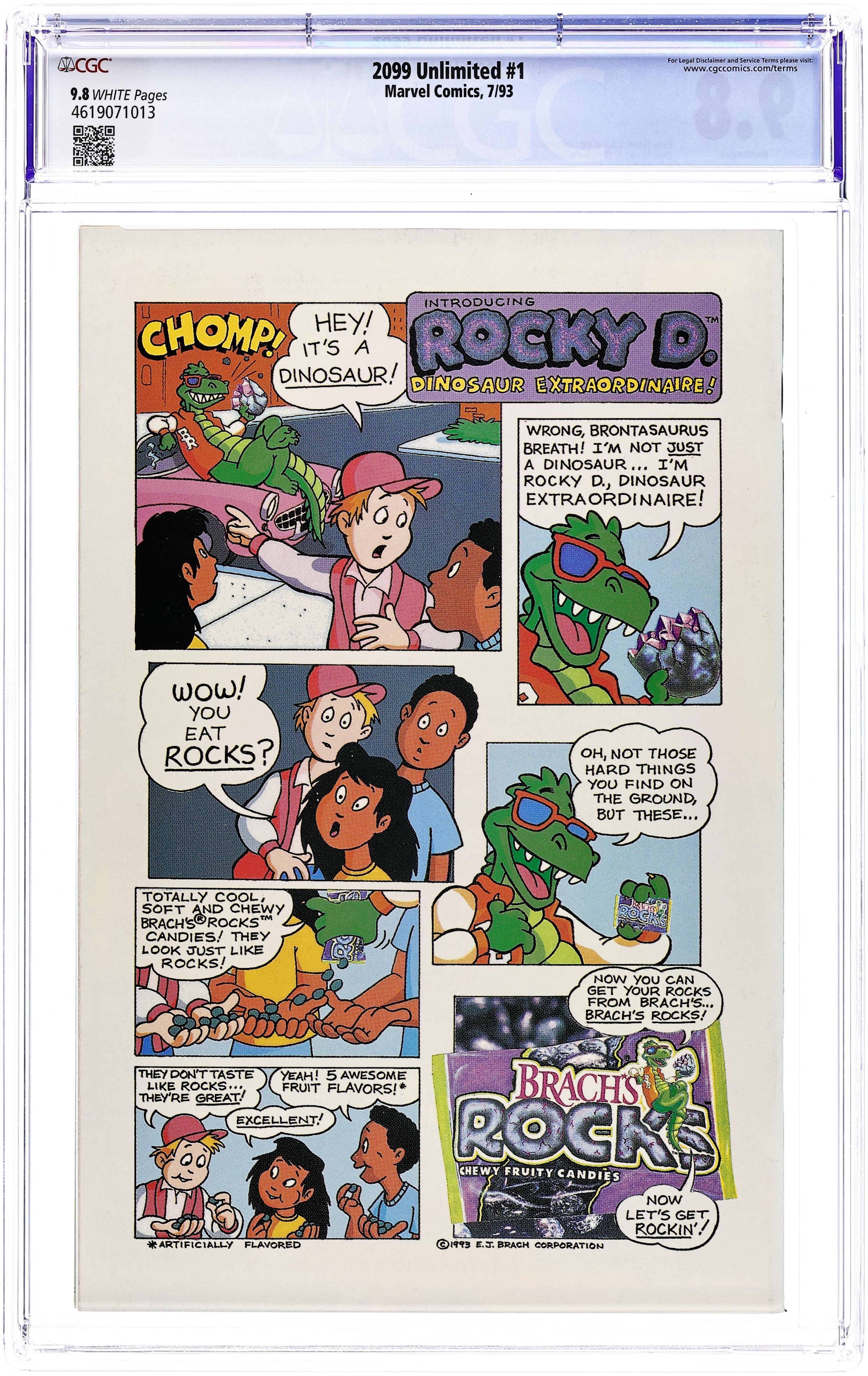 1st Warren Ellis work at Marvel. Cover art by Paul Ryan. "Hammer's Echo," script by Gerard Jones, pencils by Joe Brozowski (as J. J. Birch), inks by Mark McKenna; Hulk 2099 and the Thorites battle Sigurd, only to find that Sigurd was actually a failed medical experiment and not really a true foe of Valhalla. Untitled story, script by Warren Ellis, art by D'Israeli; Metal Scream tries to acquire the Hand of Tiamet before evil can get its hands on it but arrives to late and battles Pain Queen thinking that she was the one that killed Pylon when it was in fact Necrosis who killed Pylon and took the hand; Metal Scream later finds and lobotomizes Necrosis. Untitled story, script by Ian Edgington, art by David Klein; Lachryma 2099's origin story. 68 pgs., full color. Cover price $3.95.