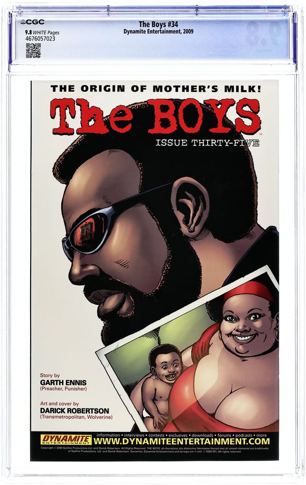 Written by Garth Ennis. Art and Cover by Darick Robertson. Need the perfect jumping-on point for The Boys after binging it on Prime? Here you go! Dynamite never actually had the honor of publishing issue #1 of The Boys (we started with #7), but now we're going to do it! But we're not just reprinting issue #1, we're doing it and charging just $1.00 for it! See where it all began… For a buck! Includes a reprinting of The Boys #1 by Garth Ennis and Darick Robertson along with new promotional material for all of Dynamite's Boys merchandise and publications! 32 pages, full color. Rated M Cover price $1.00.