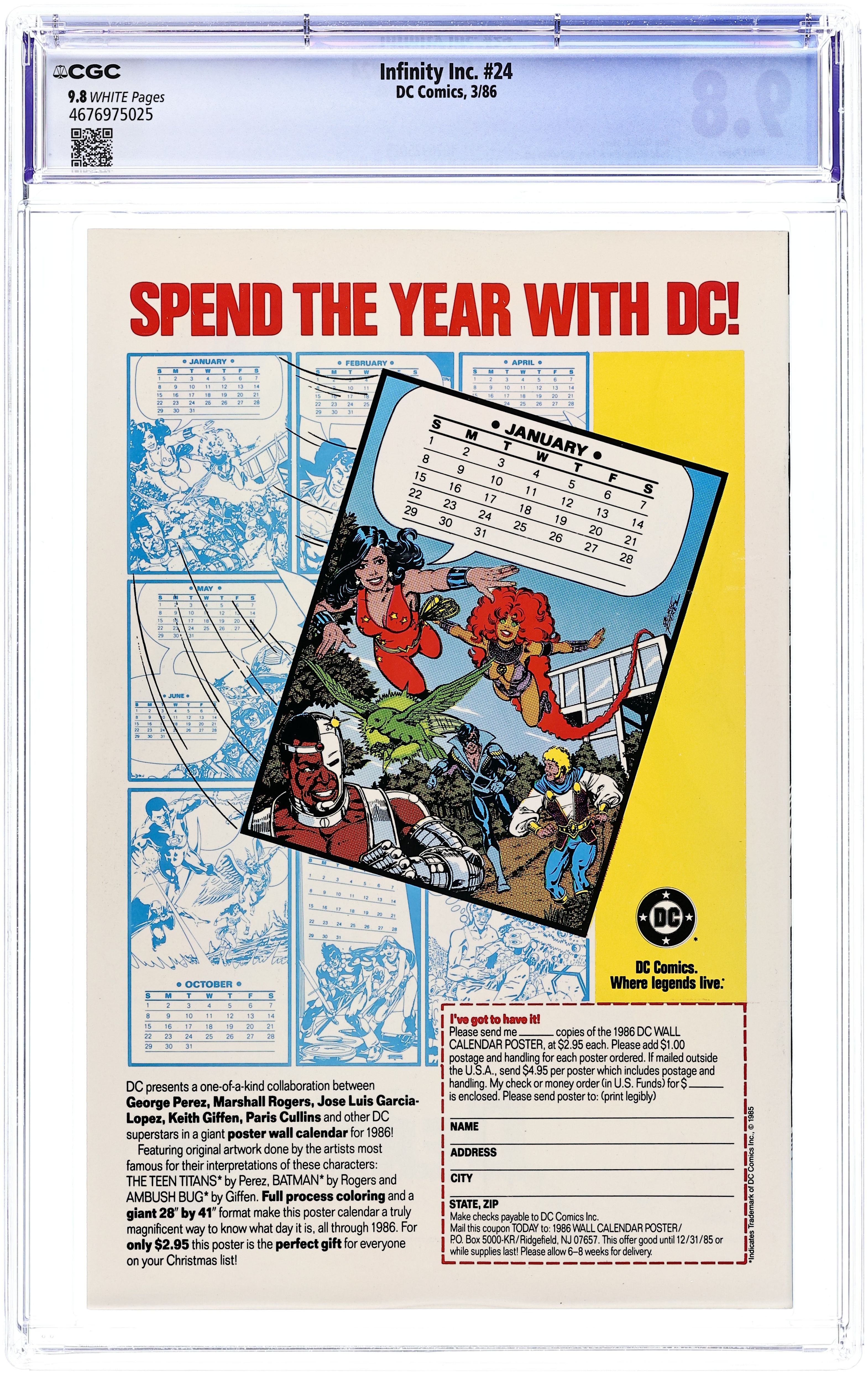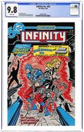 The competition is getting positively deadly in the super-heroing business, as the multi-villainous menace of Injustice Unlimited steps into the marketplace for a decidedly hostile takeover of the Infinitors' lives. The Global Guardians guest-star in this tale by Roy and Dann Thomas, penciller Todd McFarlane, and inker Tony DeZuniga. Cover by McFarlane and DeZuniga. Deluxe format. Cover price $1.50.